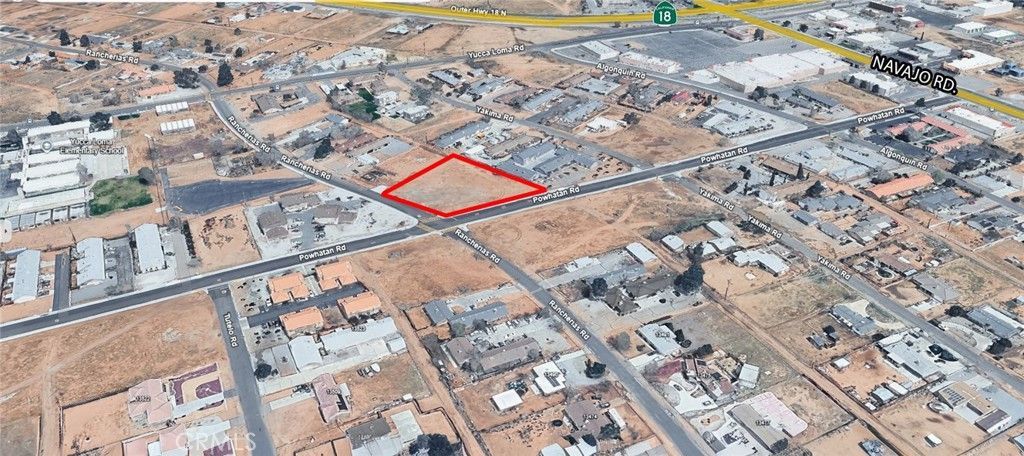 ±0.96ac Multi-Family zoned vacant land offering. Situated at the northeast corner of Powhatan Rd & Rancherias Rd in the Town of Apple Valley. Zoning is R-M (Multi-Family Residential) allowing up to 20 units per acre. Curb, gutter, and sidewalk already existing along the south side of the parcel fronting on Powhatan Rd. Just one block south of Yucca Loma Elementary School. Close proximity to parks, goods, and services. All utilities in the street fronting the site. Excellent opportunity to acquire vacant land for future apartment or townhome development.