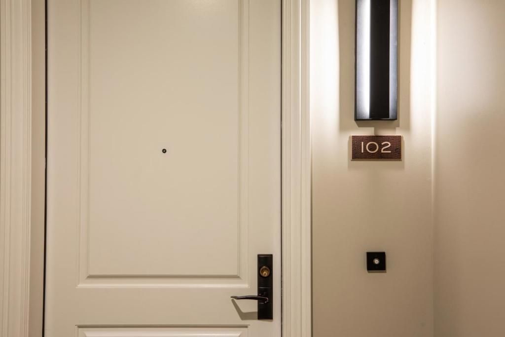Refined downtown Los Altos living with rare privacy. Located in one of the premier residential buildings, this sophisticated ground-floor residence offers ~1,714 sq ft with 2 bedrooms, a dedicated office/den and 2 baths. Privately positioned at the rear, the home enjoys a quiet, green outlook just moments from shops, dining, and local amenities. Tall ceilings, espresso-hued engineered wood floors, crisp millwork, and designer lighting define the interiors. The open-concept kitchen, dining, and living areas feature white cabinetry, soapstone countertops, Viking stainless appliances, and an island with seating. French doors open to a private patio framed by a lush living wall, creating seamless indoor-outdoor flow. The primary suite includes a dual-entry walk-in closet and spa-inspired marble bath, separate vanities, and frameless shower. Additional features include California Closets designed storage, custom window treatments (Conrad), central A/C, laundry room w/sink. Exclusive amenities include video security, concierge service, central lobby, fitness center, private club room, and rooftop terrace with grill. Secure underground parking includes two spaces with optional EV charging. Los Altos schools. Experience luxury, convenience, and community in this stunning downtown condo.