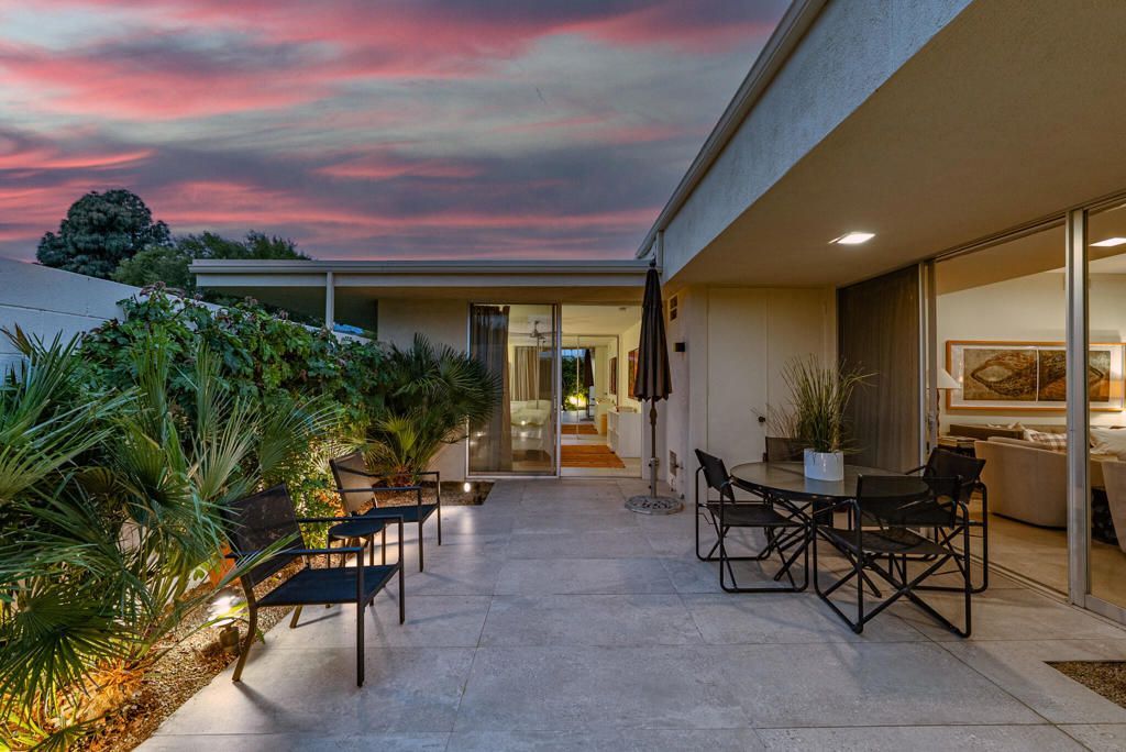 Set within the architecturally significant Seven Lakes Golf and Country Club in South Palm Springs, this beautifully remodeled 2-bedroom, 2-bathroom residence reflects the timeless vision of Richard E. Harrison (1967) and is thoughtfully updated for today's lifestyle.The home has been fully renovated, blending clean, contemporary finishes with classic midcentury lines. Neutral, modern tile flows seamlessly throughout, enhancing the open feel and framing effortless indoor-outdoor living. From the private courtyard, enjoy southern views of the San Jacinto Mountains, a serene backdrop for everyday living and entertaining.The renovated kitchen and bathrooms feature refined materials and smart design, while major system upgrades--including updated HVAC, roof, and water heater--offer peace of mind. Conveniently close to covered parking, the layout is ideal for full-time, part-time, or lock-and-leave living. A successful rental history further enhances the home's flexibility and appeal.Seven Lakes is a low-density, very social, 24-hour guard-gated community renowned for its amenities: 15 pools and spas--all heated seasonally, pickleball and tennis courts, electric car charging stations, and a celebrated Seven Lakes Clubhouse, originally designed by William Cody, featuring soaring ceilings, a restaurant and bar, and a superb chef. Golf enthusiasts will appreciate the Seven Lakes Golf Course, designed by Ted Robinson, famously associated with Dwight D. Eisenhower's hole-in-one.A rare opportunity to own a move-in-ready, architecturally significant residence in one of Palm Springs' most iconic and welcoming communities.