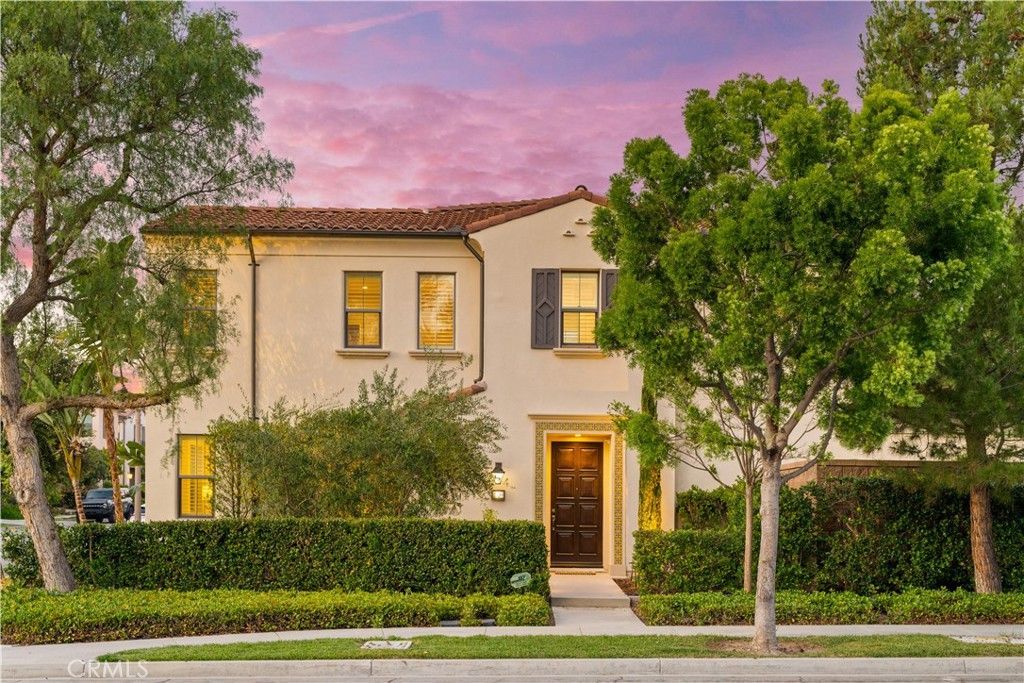 Single-Loaded Corner Lot | Highly Upgraded Interior | Resort-Style Backyard | Rare Opportunity in Eastwood This rare Eastwood end unit single family home offers exceptional privacy with no direct neighbors on three sides, a highly functional floor plan, and thoughtfully upgraded living throughout. A welcoming foyer opens to the main level featuring wide-plank extra-thick engineered wood flooring and an expansive open-concept layout. The living room, dining area, and kitchen flow seamlessly together, while large windows and dual sliding glass doors create a bright, airy space with effortless indoor-outdoor connection. The upgraded kitchen features a designer backsplash, KitchenAid appliances, wine fridge and a custom pantry with built-in shelving. The spacious great room is enhanced by custom motorized shades and elegant drapery. The first floor also includes a powder room and a private guest suite with its own full bathroom, ideal for guests or multi-generational living. Upstairs, a spacious open loft features French doors and a Juliet balcony, offering flexible living space. The private primary suite enjoys peaceful green views and features dual walk-in closets with California Closets built-ins, motorized shades, and a spa-inspired bathroom with dual vanities, soaking tub, and separate shower. Two additional upstairs bedroom suites each include their own bathrooms, with one featuring a Juliet balcony. Step outside to a private backyard retreat designed for relaxation and entertaining. Beautiful stone hardscape leads to a California room, tranquil waterfall feature, and fire pit. The outdoor kitchen is equipped with a Lynx BBQ, sink, and refrigerator. A heated pool and spa complete the backyard, surrounded by mature landscaping for enhanced privacy. Additional highlights include water softener and filtration system, epoxy garage flooring, new water heater, security system, and surveillance cameras. Located in the highly desirable Eastwood community offering parks, pools, spas, walking trails, playgrounds, and sports courts. Walking distance to the elementary school and minutes from shopping and dining, all within Irvines award-winning school district. Opportunities like this rarely come to market ? a highly upgraded, private Eastwood home with exceptional indoor-outdoor living.