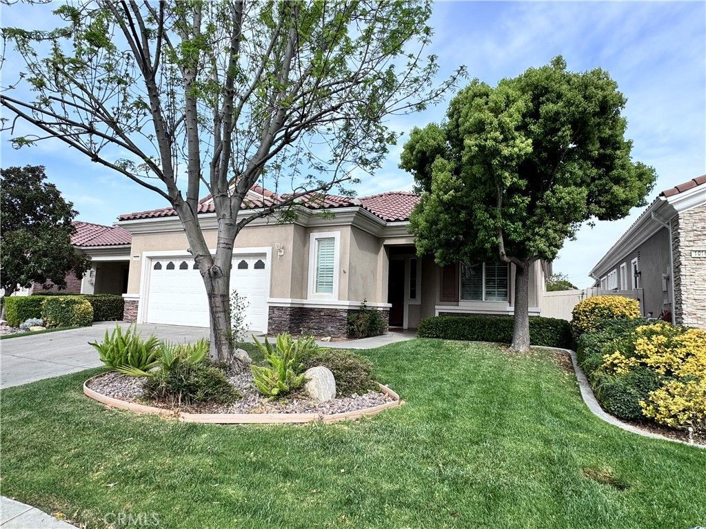 Move-in ready and available now in the sought-after 55+ community of Solera Oak Valley Greens in Beaumont! This popular Trillion model offers a spacious layout with 2 bedrooms plus a den, each bedroom featuring a walk-in closet and private full bath. Enjoy vaulted ceilings, ceiling fans throughout, a cozy gas fireplace, indoor laundry, EV charging, and low-maintenance drought-friendly landscaping. Community amenities include a clubhouse, golf course, tennis courts, bocce ball, pool, fitness center, and vibrant social activities.
