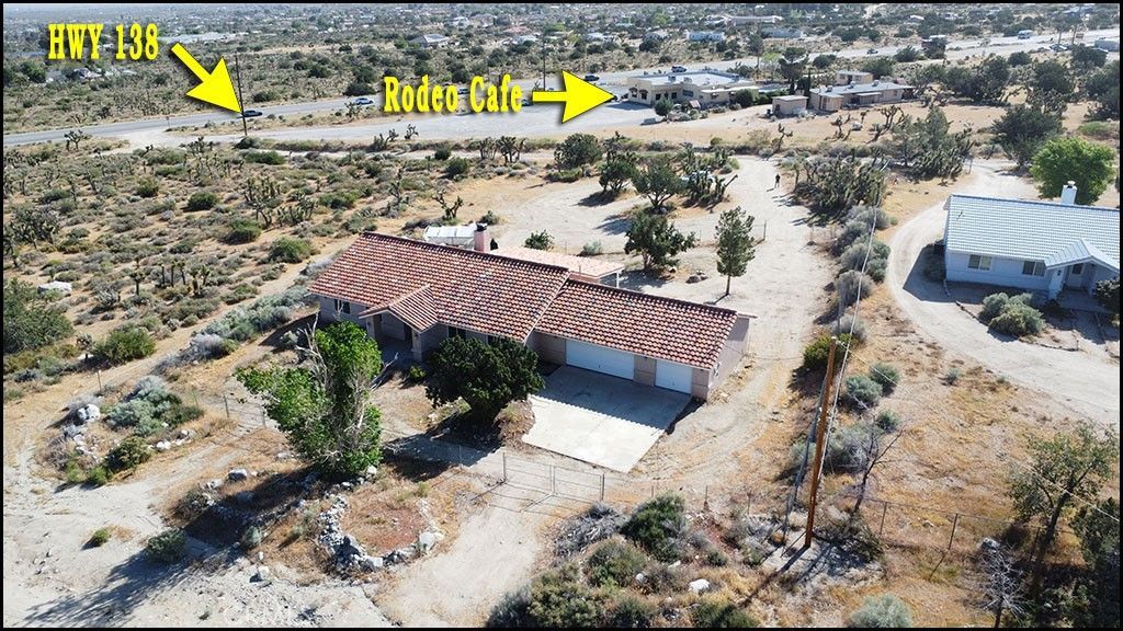 This beautiful, move in ready for modern living while embracing rural charm, home in Pinon Hills, just one lot away from HWY 138, has been well loved and maintained with beautiful view of the mountains! The 1918 Sqft. of living space has three bedrooms and 2 baths including a master bedroom with a walk-in closet, master bathroom with dual sinks, separate shower and garden tub and 838 Sqft attached 3 car garage. Has a fireplace in the living room, granite counter with tile floors, breakfast nook in the kitchen. Nice covered patio at the back. Security screen door at the back. There are two gates on Crystal Aire Rd. You can access the home from the backyard. Rodeo Café, which opened in April 2024, is the just across the street. Enjoy the serenity of rural living with easy access to HWY 138 and Mountain High Ski Resort, just minutes away, located in Wrightwood. A must-see for those seeking a blend of comfort and self-sustainability! Located in the AWARD WINNING SNOWLINE SCHOOL DISTRICT.