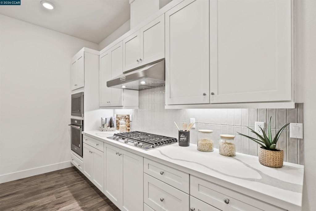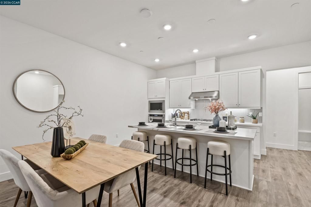 Connect with what matters most at Terraces at The Station, a new townhome community in Sunnyvale, the heart of Silicon Valley. A truly accessible home with a room on every level. Craftsman style stairs flow up to the bright living level on the second floor, revealing the spacious great room, covered balcony, and casual dining area. The designed kitchen is highlighted by a large center island with breakfast bar, Energy Star KitcheAid stainless steel appliances, modern cabinets, quartz countertops with designer tile backsplash. The third floor, the gracious primary bedroom suite is enhanced by an ample walk-in closet and a gorgeous primary bath with a dual-sink vanity, a large luxe shower with seat enhanced by clear-glass enclosure. Thoughtfully designed interiors with 8-foot doors, 5-1/2 baseboards, and modern energy-saving LED integrated recess lights throughout. Finished 2-car garage includes pre-wired plug with 50 amps for electric car charging. Enjoy the community clubhouse, indoor/outdoor lounge area, fireplace, bocce ball court, dog park, walking paths and expansive lawns. Terrace at the Station is located near Santana Row, Valley Fair Mall, Shopping Centers. Close to VTA Light Rail, Lawrence Caltrain and Bart. (photos not of actual home, for marketing only)