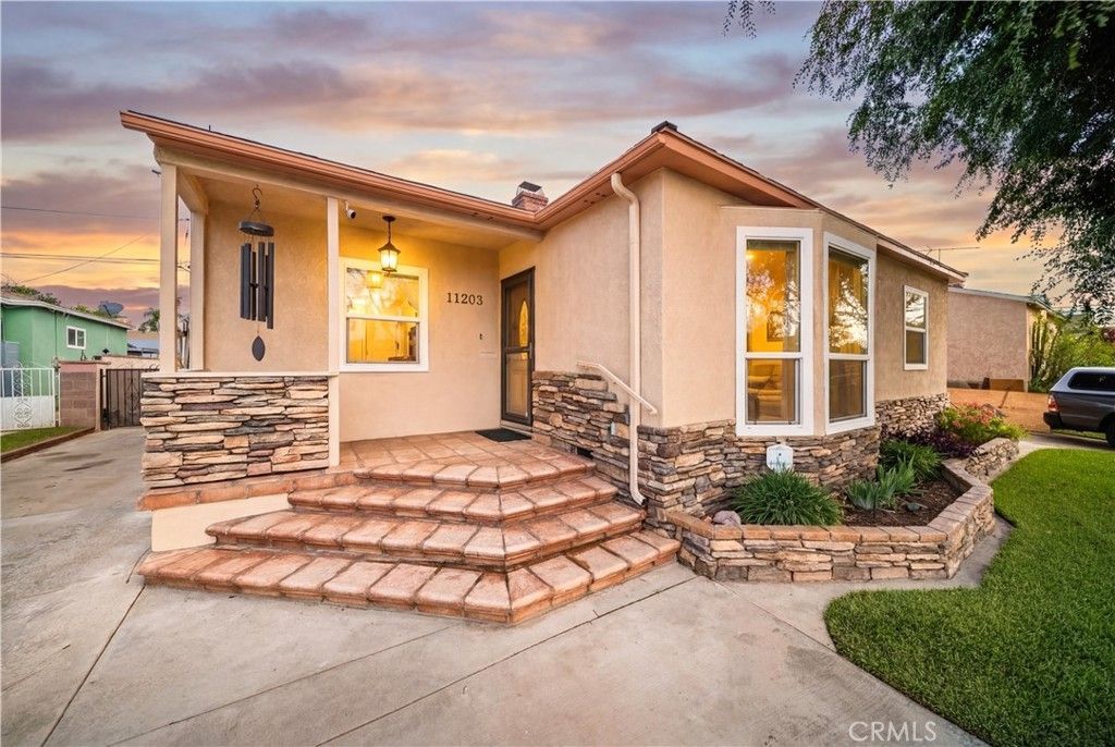 Welcome to this beautifully maintained 3-bedroom, 2-bathroom family home, offering comfort, charm, and a highly desirable central location. The inviting front yard features a grass lawn, planter, and a mature shade tree, creating wonderful curb appeal. An entry porch with steps leads you into a spacious living room filled with natural light from a large front-facing window. The kitchen features beautiful cabinetry, a pantry, and a convenient laundry area. With direct access to the backyard, its perfect for both everyday living and entertaining. Outside is to a private backyard complete with a patio, lawn space, and a detached 2-car garage. Inside, youll find three comfortable bedrooms, including a primary suite with its own en-suite bathroom, along with a second full bathroom. Ideally situated between Los Angeles and Orange Counties, this home offers the best of both worlds?a central location with a charming small-town feel, all within an area known for its excellent schools.