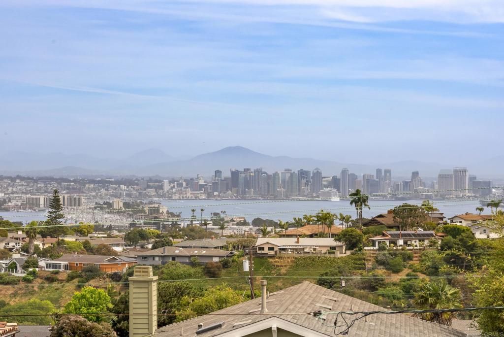 Fabulous opportunity in Point Loma with sweeping views of the bay and downtown, and walking distance to Sunset Cliffs. Start your mornings with coffee on the deck as the sun rises over the city and enjoy front-row seats for spectacular Fourth of July fireworks. Designed for effortless indoor-outdoor living, this mid-century home features two spacious decks plus a crows nest viewing area that takes the views to the next level. Relax in the cozy living room full of character with fireplace, wood ceiling and stunning night and day views. Embrace the Point Loma lifestyle?walking distance to groceries, coffee, Sunset Cliffs, top-rated Silver Gate Elementary school, and Point Loma Park, home to summer concerts and PL Little League. Lovingly owned by the same family for over 30 years, the home has been freshly painted and thoughtfully staged. Owned solar panels; newer AC-ready furnace, tankless water heater and retractable awning. A flexible floor plan offers the convenience of single-level living on the main floor, with a large family room and two additional bedrooms below?ideal for guests, multigenerational living, or extra space to spread out. With two garages plus RV parking area, theres ample space for all your vehicles and toys. The upper garage offers an exciting opportunity for conversion to additional living space. With great bones and endless potential, this is your chance to create the Point Loma home of your dreams. Welcome home.