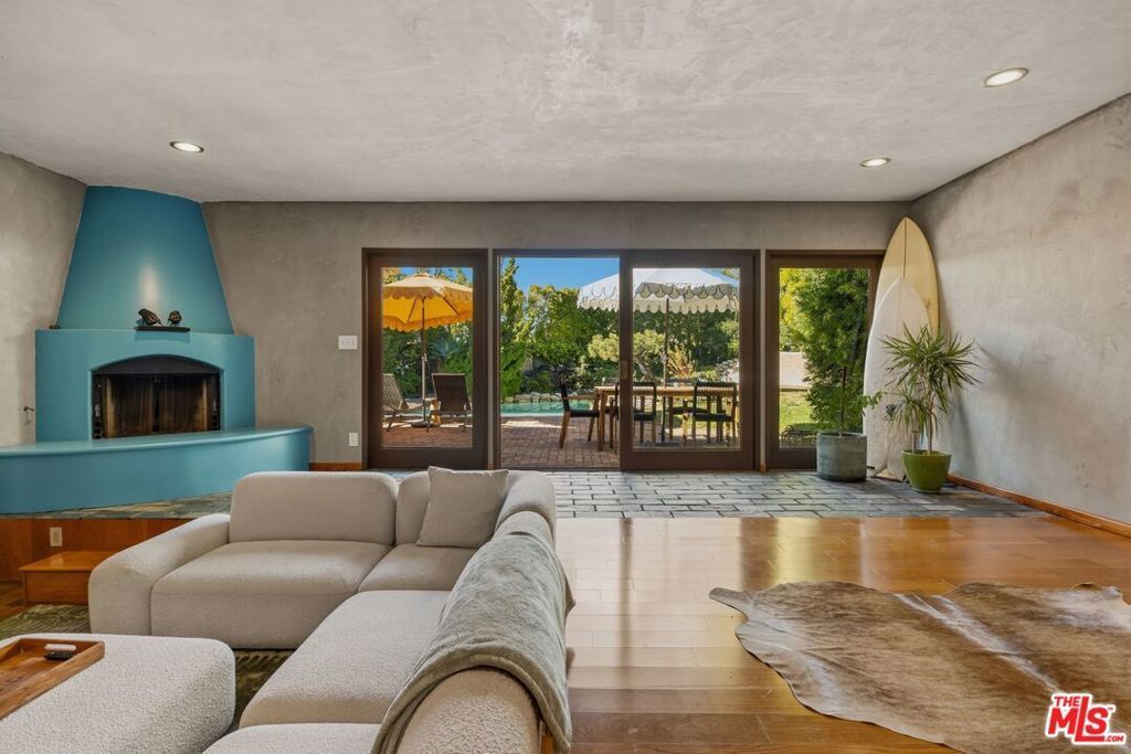 A rare offering in Bel-Air. This 3-bedroom, 3-bath, nearly 3,000 sq. ft. mid-century modern sits on a private corner lot, blending timeless design with effortless California living. Think evenings by the wood-burning fireplace in the sunken living room, or relaxed entertaining that carries easily from one space to the next. The kitchen and dining areas open naturally into both the main living room and the sunken loungeeach anchored by original wood-burning fireplaces that add warmth and character. The rooms feel open and inviting, with natural light throughout and a sense of scale that reflects true mid-century design. The home flows seamlessly outdoors into a quintessential backyard retreat. Generous grounds surround a heated dining patio and BBQ area, along with a more secluded alfresco lounge and spadesigned for both quiet mornings and evening gatherings. At the center, an oversized lagoon-style pool is framed by mature foliage, natural stone, and canopying trees, creating a setting that feels private, organic, and distinctly Bel-Air. Thoughtfully updated with new flooring, electrical, EV charger, HVAC, heated pool, hot tub and more, the home is ready for today while maintaining its architectural integrity. Set on a flat 11,000+ sq. ft. corner lot, it also offers a rare opportunity for expansion, with potential for unobstructed city and downtown views from a future second story.