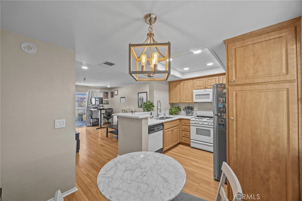 Beautifully updated and exceptionally spacious, this two-story condominium lives more like a two-bedroom home than a typical one-bedroom unit. Bright and inviting, it features wonderful natural light throughout and thoughtful upgrades at every turn. The first floor offers an open-concept layout with a modern kitchen, dining area, and living room that flow seamlessly together?perfect for entertaining or relaxing. The kitchen includes a reverse osmosis water filtration system and a brand new dishwasher, while new recessed lighting adds a warm, contemporary touch. Upstairs, the oversized bedroom includes two generous closets and a stylishly renovated bathroom (updated in 2022) with new tile and a modern vanity. The convenient upstairs laundry room includes a washer and dryer and doubles as a large storage area with built-in shelving. Additional recent upgrades include a brand-new furnace and air conditioning unit for year-round comfort. Enjoy your private front patio?ideal for outdoor dining or quiet evenings. The gated community features low HOA dues, a secure parking structure with two assigned spaces, and six guest spots. Centrally located with easy freeway access to all local freeways, youll be minutes from Garden Groves Main Street, the weekly farmers market, shops, restaurants, Disneyland, the Honda Center, and Angel Stadium. Easy to view... schedule your appointment today!