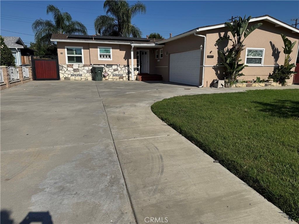 Stunning 3 bedroom and 2 bathroom home. Home is 1,194 sq ft and sits on a lot of 8,100 sq ft. This home features newly painted interior, new shutters throughout, remodeled bathroom, new A/C, solar panels. Front yard has a long driveway with ample parking and space for an RV. Home has a spacious backyard featuring a sparking swimming pool and built-in barbecue island, perfect for outdoor dining relaxation. The home is conveniently located near restaurants, shops and supermarkets. Close to 60 and 71 freeways