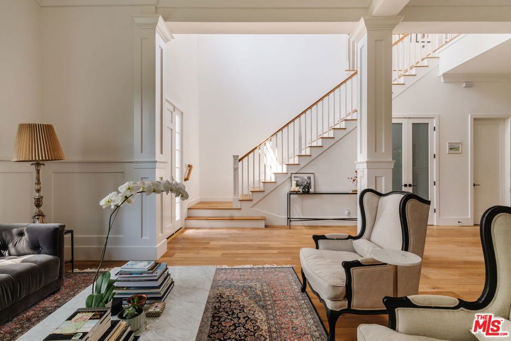 Custom built in 2018, this remarkable two story traditional home is located in a prime area of Brentwood, south of Sunset, and in close proximity to schools, shops, and restaurants. At approximately 4400 sq ft with 5 bedrooms, 6 bathrooms, this stunning home offers a rare combination of traditional design elements, luxury aesthetics, and an exceptional floor plan. The interior rooms are graciously sized and feature high ceilings, warm and tasteful finishes, with beautiful hardwood floors throughout. An impressive gourmet chef's kitchen with top of the line appliances, a pantry, a large center island with counter seating, and a breakfast area flow effortlessly into the family room that opens to a private and grassy backyard replete with a seating area and built-in barbecue. The second story encompasses a large primary suite with a fireplace, as well as three well appointed bedrooms, each with its own en-suite bathroom. Gated and private, this home is a perfect opportunity to acquire a luxuriously appointed home in a desirable and central location in Brentwood.
