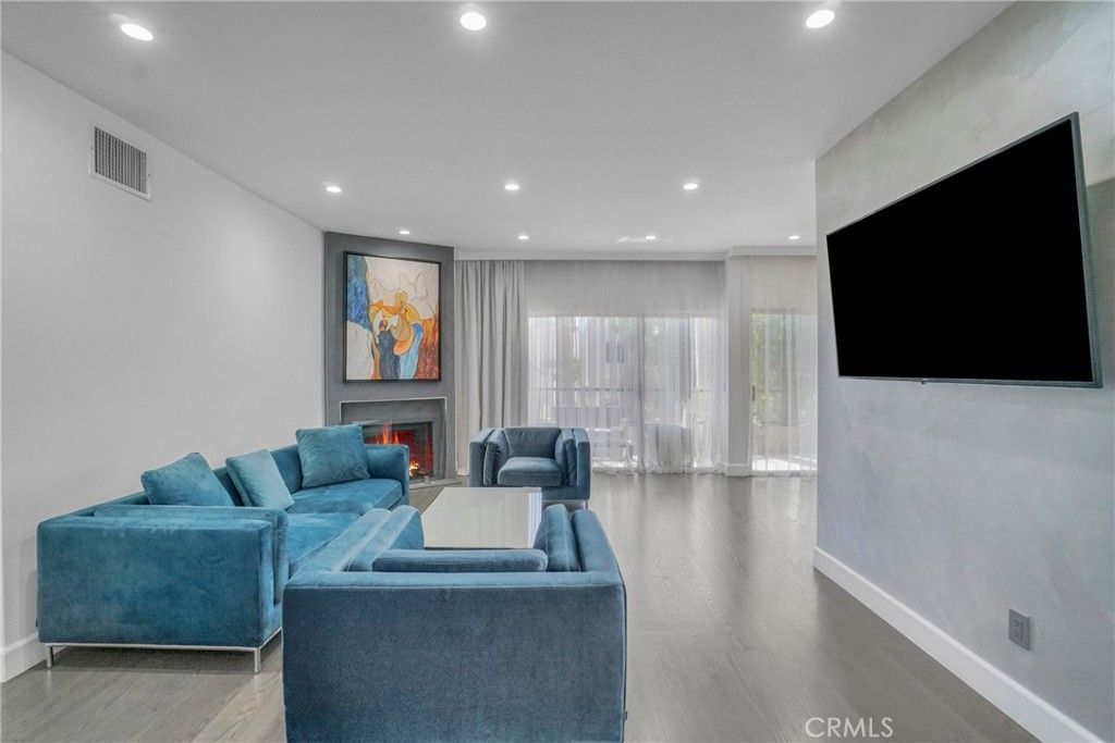 Chandler Park Village!!! Unit #207 Exquisitely remodeled 3-bedroom, 2.5-bathroom condo that exudes sophisticated modern living in the heart of Sherman Oaks. No expense was spared in transforming this residence into a designer showcase, combining elegance, smart technology, and luxurious finishes throughout. From the moment you step inside, you're greeted by sleek European oak floors, elegant recessed lighting, and a thoughtfully designed open floor plan perfect for entertaining. The living area is anchored by a cozy modern fireplace and accent wall, complemented by private balcony that fills the home with natural light. The custom chefs kitchen is a true masterpiece, boasting high-end Quartzite Cristallo countertops, sleek dual-tone cabinetry, soft-close drawers, and top-of-the-line smart appliances. Whether you're preparing a quick meal or hosting a dinner party, this kitchen is equipped to impress even the most discerning chef. All bathrooms feature custom vanities, Quartzite Cristallo countertops, designer lighting, and luxury wall-to-wall imported tile. The spa-like primary bath includes a walk-in Steam shower with rainfall fixtures and gold hardware that adds a touch of glamor to every morning routine.