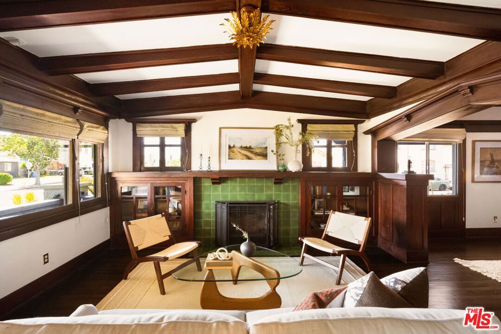Standing tall on a large corner lot, this stunning 1912 Craftsman is a must see if you love historic homes. The signature ]details, including a wraparound porch, original hardwood floors, a Japanese-influenced stained-glass window and pocket doors have been meticulously restored, while the home's major systems have all been updated and the foundation is bolted. The layout is exquisite with a stunning living room anchored by a fireplace and impressive built-ins in addition to a vaulted, beamed ceiling. Entertain in the dining room surrounded by rich, dark wainscoting with picture rails, box beams and a built-in buffet that will surely become the centerpiece of evening dinners or cocktails. Pop through the butler doors into the large kitchen with high ceilings, marble countertops, a breakfast bar and a sunlit dining nook. The primary bedroom sits at the back of the home with en-suite bath. Two additional bedrooms share a jack-and-jill bath, while the fourth bedroom sits perched on the second floor with windows that offer nearly 360-degree views. Head down to the California basement for extra storage. Step out back to find two large, mature avocado trees. You've got plenty of shade and the key ingredient for a perfect guacamole. Enjoy outdoor dining, lounging or play in the fully fenced backyard, which also has two parking spaces and an EV charger. Centrally located, you'll have easy access to USC and DTLA, as well as the Expo and Crenshaw Lines running to Culver City, Santa Monica, Inglewood and LAX. If its culture you crave, you're minutes from world-class museums, including the Natural History Museum, California Science Center and the upcoming Lucas Museum as well as the Coliseum, Crypto.com Arena, BMO Stadium, SoFi Stadium and the Forum. Shop and eat at USC Village or hit Mercado La Paloma for a bite at Holbox, which has a Michelin star. Nearby, you'll find local favorites like Fuegos, Cafecito de La Crepe, South LA Cafe, Jon & Vinny's and Somerville. Explore area hotspots like Johnny's, Alta, Chulita, Tartine, Farmhouse Kitchen, All-Chill Ice Cream, Cento Raw Bar and Maydan Market. This home has character, charm and culture. Come take a look!