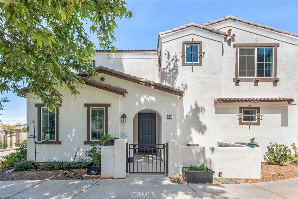 Welcome to this beautifully designed 2024-built Spanish Colonial residence located in a gated Moreno Valley community with scenic lake views. This spacious 4 bedroom, 3.5 bathroom home offers 2,116 sq ft of modern living with thoughtful upgrades and an open, functional layout. Situated on a desirable corner unit, the home features a 2-car garage, paid-off solar panels, and a private courtyard entry that adds charm and outdoor living space. Inside, the open floor plan is filled with natural light and enhanced by upgraded flooring, recessed lighting, and a modern kitchen with stainless steel appliances, a large island peninsula, pantry and ample storage. The layout is ideal for flexibility and comfort with two owners suites upstairs, both featuring double sink vanities, while the primary suite offers beautiful lake views and walk in closet. The other suite has views of the mountains and pool. A downstairs flex room can easily function as a bedroom, office, or guest suite, also enjoying views of the lake from the living area. Residents enjoy resort-style amenities including a clubhouse, pool/spa, walking trails with lake views, and a community park just steps away. The location is exceptionally convenient?within walking distance to Moreno Valley College, Lasselle Elementary, shopping, and dining, and just minutes to Riverside University Health System Medical Center, Kaiser Permanente, and Lake Perris Recreation Area. Enjoy beautiful sunsets over the lake, modern energy efficiency, and the convenience of living in one of Moreno Valleys newest communities.