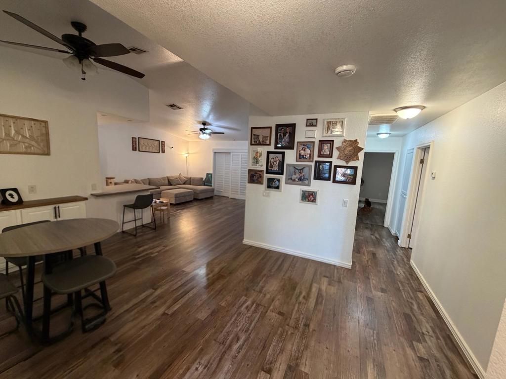 Well-maintained 3-bedroom, 2-bath home offering comfortable and functional living space. This home features an open-concept layout with a spacious living area that flows seamlessly into the kitchen and dining area, creating an inviting space for both everyday living and entertaining.The kitchen offers ample cabinetry, generous counter space, and a functional layout that overlooks the main living area. Updated flooring runs throughout the home, adding a modern touch and low-maintenance appeal. Natural light fills the space, complemented by ceiling fans and window shutters for added comfort and efficiency.The primary suite includes a private bathroom with dual sinks and plenty of storage. Additional bedrooms are well-sized and offer flexibility for guests, a home office, or growing needs.Step outside to a generously sized backyard with a custom built-in BBQ setup ready for outdoor gatherings and weekend grilling. The property also features a 2-car garage and a welcoming front entry.Conveniently located near a local elementary school and close to everyday amenities, this home offers a great combination of comfort, functionality, and location. Don't miss the opportunity to make this home yours!