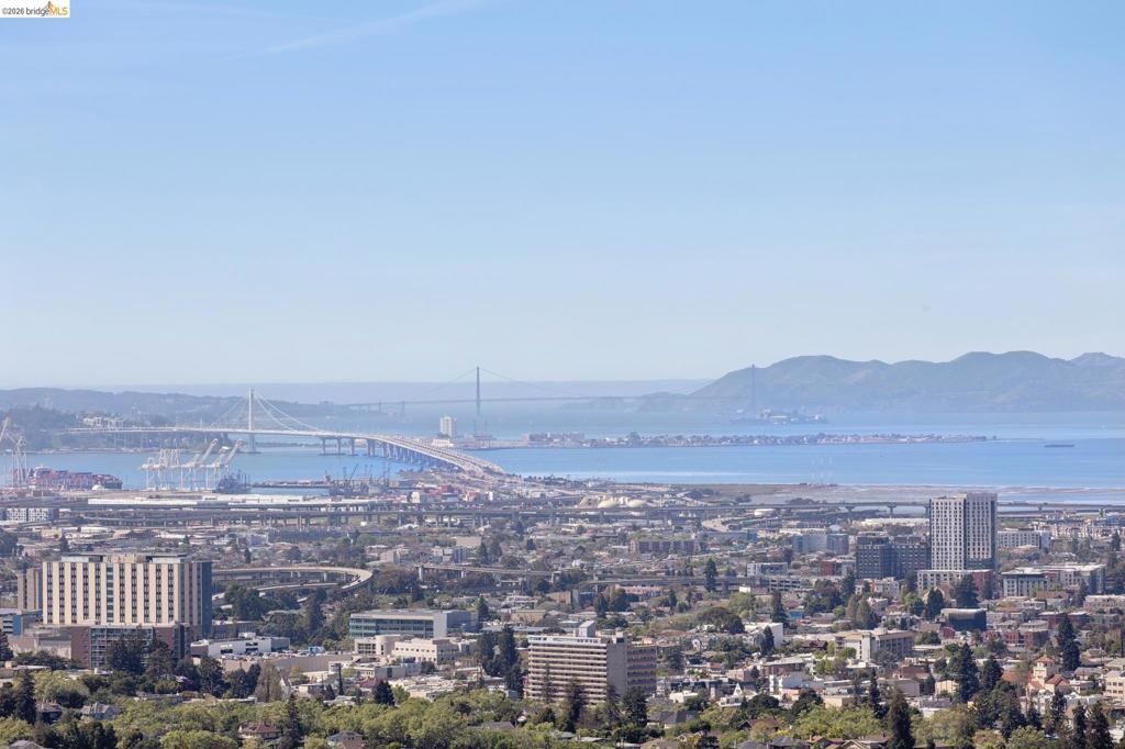 This enchanting storybook traditional, commands sweeping San Francisco Bay views that unfold like a living painting, light, water, and skyline in constant motion. A compelling blend of timeless character and just-completed updates, the home pairs classic architecture with effortless livability. The main level features a striking living room with wood-hewn beams and rustic wood burning fireplace, a striking dining room oriented to capture the mesmerizing views, and a perfectly placed bedroom and full bath. Interior access to the attached two-car garage adds everyday ease. The newly renovated eat-in kitchen is a true centerpiece, with crisp new cabinetry, updated countertops, a new state-of-the-art induction range, and elevated designer finishes, overlooking a sunlit, level lawn, ideal for play or relaxation. Upstairs features three spacious bedrooms and two beautifully updated baths, with two bedrooms featuring versatile adjoining spaces and a primary set apart for a quiet retreat. A truly special offering, moments from Piedmonts renowned schools, parks, and the soon-to-open community pool. Views: Downtown