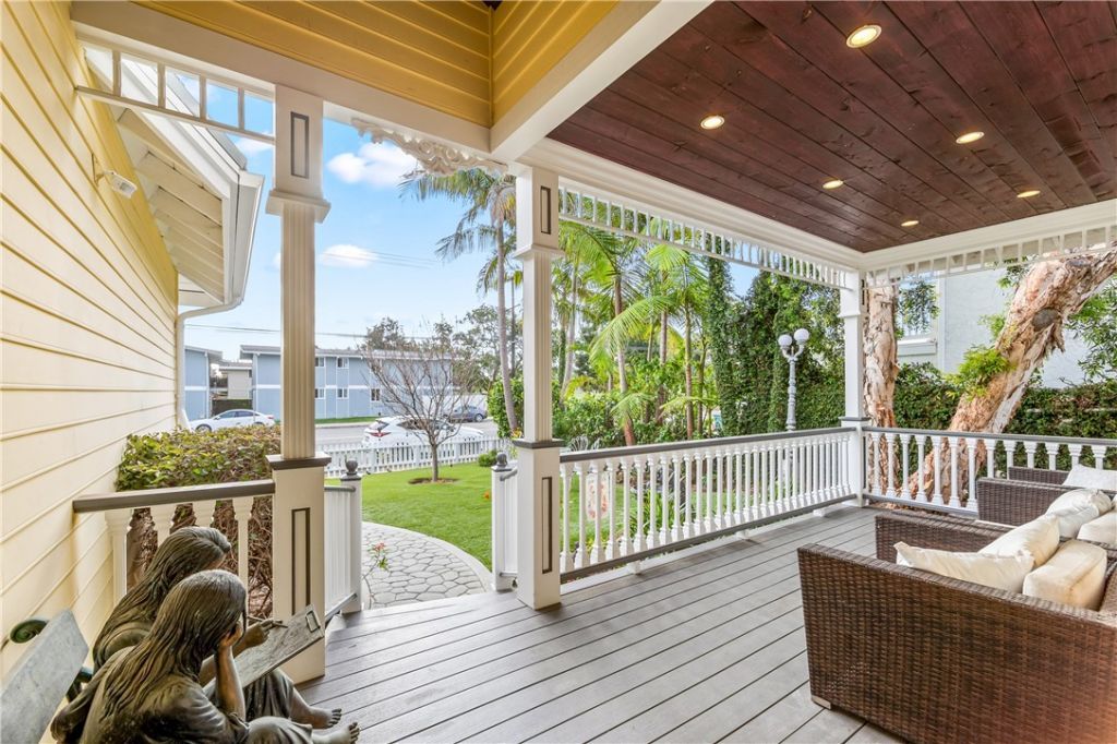 Stunning approx. 4,200 sq. ft. Huntington Beach executive home with 5 bedrooms and 3.5 baths, including a versatile bonus room ideal for office, media, or playroom. Prime location near Meadowlark Golf Club, parks, top-rated schools, and just one mile from the beach. Elegant interior features limestone, granite, and hardwood flooring, soaring ceilings, and refined architectural details. Highlights include a step-down living room with fireplace and baby grand piano, formal dining room with crystal chandelier, and spacious family/game room with pool table. Gourmet kitchen boasts Thermador double ovens, Viking gas cooktop and microwave, Bosch dishwasher, Sub-Zero refrigerator, wine fridge, and additional refrigeration in the garage. Flexible floor plan includes a main-level bedroom with private bath and a luxurious primary suite with cathedral ceilings, fireplace, copper soaking tub, dual vanities, walk-in shower, and dual walk-in closets. Resort-style backyard features pool, spa, BBQ/bar area, and multiple seating spaces. Additional amenities include three fireplaces, three TVs, solar panels, dual-zone HVAC, whole-house water filtration, and covered front porch.