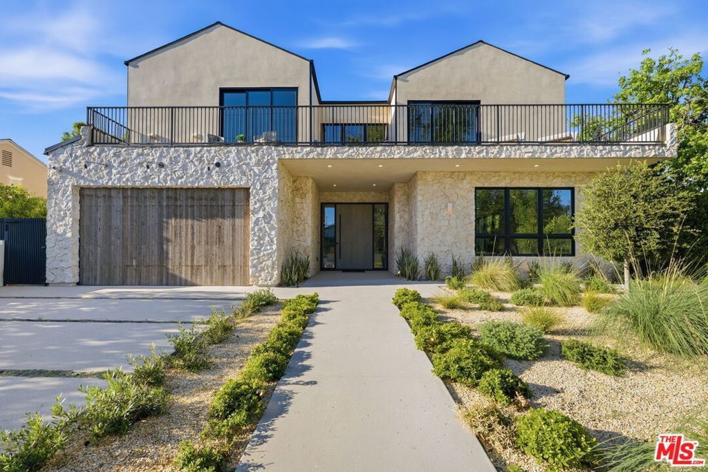 Modern organic newly built home on a prime Encino lot of over 10,000 sq ft, this refined farmhouse blends timeless architecture with warm, upscale design. Thoughtfully crafted with Roman clay plaster walls, soaring high ceilings, and an impressive open-concept layout, the home offers both comfort and sophistication. The main living spaces are designed for seamless indoor-outdoor living, filled with natural light and ideal for entertaining. At the center, the chef's kitchen features custom oak cabinetry, top-tier appliances, and an oversized island with breakfast seating. The primary suite is a true retreat, complete with a private balcony overlooking the yard, a spacious walk-in closet, and a spa-inspired bath. Home also offers a 1-bedroom ADU with its own kitchenette providing flexibility for guests, a home office, or extended living. The expansive backyard is a private oasis with a sparkling pool and spa, abundance of grass area and a built-in BBQ with bar seating, perfect for hosting or entertaining. Situated on a quiet tree lined street located near Encino's premier shopping, dining, and top-rated schools.