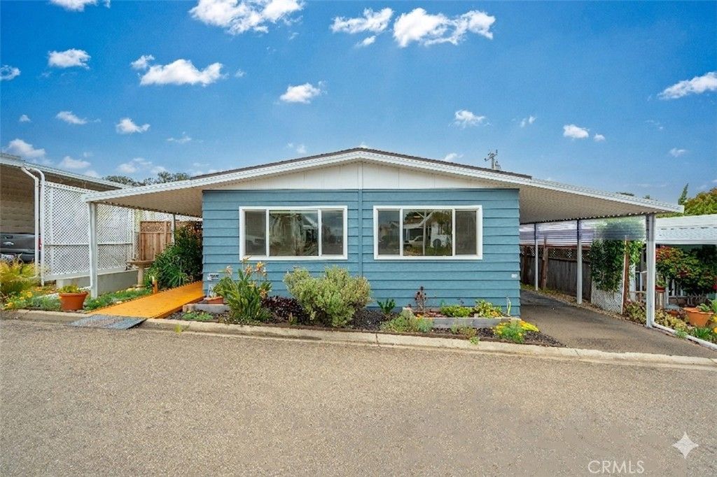 This extensively remodeled mobile home in Los Osos, offers an elevated approach to Central Coast living, featuring a thoughtfully designed open floor plan and refined upgrades throughout. Interior elements include wood laminate flooring, crown molding, recessed LED lighting, skylights in the kitchen and den, and vinyl dual-pane windows that create a bright and well-integrated living environment. The entry is stair free and wheel chair accessible! The kitchen is well-appointed with quartz countertops, a farm sink, tile backsplash, newer appliances, self-closing drawers, and generous cabinetry, with added natural light from overhead skylights. The living and den areas are enhanced with wainscoting and ceiling fans, while French doors open from the den to a private covered deck, extending the living space outdoors. The primary suite offers new carpeting and a spa-inspired bathroom complete with a soaking tub, separate custom tiled shower, double sinks, quartz countertops, and an upgraded vanity. The guest bathroom continues the updated design with quartz countertops, an upgraded vanity, and a custom tiled shower. Outdoor spaces are thoughtfully arranged to support a variety of uses, including a private covered deck, terraced garden area, low-maintenance turf section, and a backyard area suitable for planting, including citrus. Additional features include a covered carport with direct access and a custom shed configured for storage or workshop use. Situated in Los Osos near the coast and local amenities, this home is located within the Sea Oaks Mobile Home Park, offering access to a heated pool and spa, clubhouse with kitchen facilities, and shared community spaces. This property combines refined interior upgrades with flexible outdoor living in a comfortable Central Coast setting.