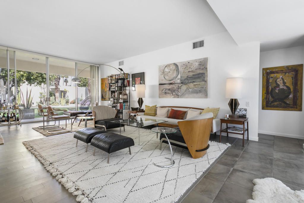 Discover one of the best values in Palm Springs with this beautifully updated 2-bedroom, 2-bath residence--an exceptional opportunity to own a piece of architectural heritage. Designed in 1964 by Richard E. Harrison and among the original homes in the sought-after Seven Lakes Golf & Country Club, this property seamlessly combines iconic mid-century design with modern upgrades. The thoughtfully renovated interior features a sleek, contemporary kitchen and stylishly upgraded bathrooms, complete with high-end finishes and premium appliances. Expansive walls of glass flood the home with natural light, enhancing the open-concept layout and creating a seamless indoor-outdoor flow--ideal for embracing the Palm Springs lifestyle. The flexible second bedroom easily serves as a guest retreat or home office, featuring large sliding glass doors that frame mountain views and open directly to a private courtyard. Designed with efficiency in mind, the home includes an upgraded electrical panel, new HVAC and solar energy system to help reduce utility costs. Additional highlights include a private garage with ample storage. Located within a secure, gated community, residents enjoy resort-style amenities including a clubhouse with dining and bar, multiple heated pools and spas, a Ted Robinson-designed golf course, plus tennis and pickleball courts--offering an elevated living experience year-round.