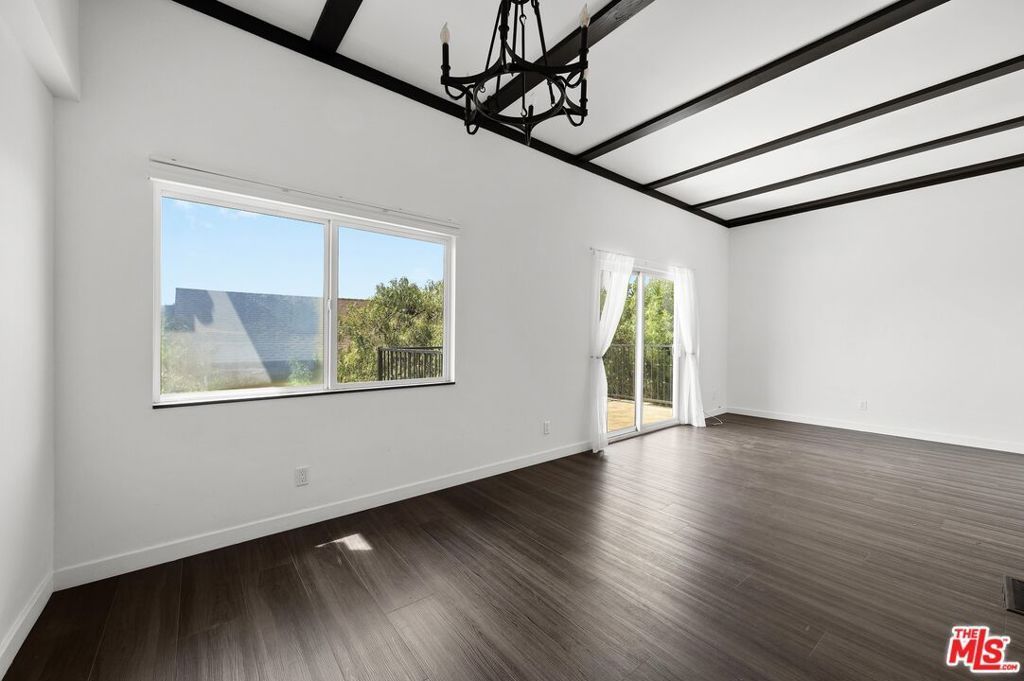 Welcome to 1915 1/2 Apex a beautifully updated Silver Lake residence offering the perfect blend of style and functionality. This lower level 2-bedroom, 3-bath home includes a bonus studio with separate entrance, ideal for a home office or creative space. The living area features high ceilings with exposed wood beams and opens to a private balcony. The kitchen offers ample storage, a built-in microwave, and dishwasher, plus a separate in-unit laundry area. The primary bedroom showcases stunning views of the Hollywood Sign and Silver Lake Reservoir, along with an en-suite bath and glass-enclosed rain shower. The second bedroom also includes its own full bathroom, with a third bath in the hallway. Enjoy a large private deck and a detached bonus room with its own entrance perfect for a live/work setup. Located in the desirable Silver Lake Hills, just minutes from the reservoir, shops, dining, and easy access to the 101, 2, and 5 freeways.
