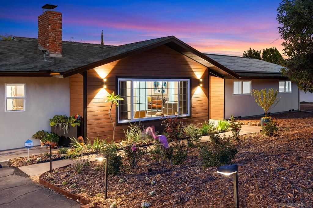 Stunning midcentury masterpiece, thoughtfully designed and set on a 1/2 acre lot with sweeping east-facing views. California indoor-outdoor living at its finest with this remodeled 5-bedroom, 3.5 bath estate. The main home features 4 bedrooms, 2.5 baths and a pool?and theres nothing junior about the attached Junior ADU, a 1-bedroom/1-bathroom unit with a separate entrance and a full kitchen, offering the ultimate in flexible multi-generational living or potential for passive income. At the heart of this home is a chef's kitchen that will stop you in your tracks. Light oak cabinetry, cream-color quartz countertops with a waterfall edge, and a dramatic seafoam blue ceramic tile backsplash set the stage, while premium appliances?including an induction range?make cooking a genuine pleasure. An expansive peninsula with wine storage and barstools anchors the open-concept space, flowing naturally into the dining area and family room, an effortless setting for everything from casual mornings to memorable dinner parties. The Junior ADU (JADU) is nothing short of exceptional, from its rich mahogany pocket doors to its private patio and a complement of full-size appliances. Thoughtfully designed to maximize the space, this relaxing retreat offers its own full kitchen that includes an induction range and quartz countertops; a grasscloth-accented bedroom that opens to a private, gated patio; and an elegantly arranged bathroom with teak and marble accents, a huge spa-style shower, and a full-size LG WashTower wash/dryer. The JADU has earned a coveted spot in the Top 1% of Airbnb listings, having attained Guest Favorite status and consistently maintaining an impressive occupancy rate?a testament to its quality, design and guest appeal. Whether you continue to use it as a high-performing Airbnb mid-term rental, transition to a long-term tenant, or welcome extended family, the income potential here is as impressive as the space itself. Meander outside and discover a backyard with mountain views that rivals any resort. The lushly landscaped area surrounding the pool and patio offers a rare sense of seclusion, perfect for afternoon swims, al fresco dining, and unforgettable evenings under the Southern California sky. Mature fruit and nut trees create a setting that is as beautiful as it is functional. With a half-acre lot providing ample space, there is exciting potential to add a second ADU, further maximizing long-term value and versatility in one of California's most in-demand housing markets. A single-story layout spanning four bedrooms and 2.5 baths, the main residence blends midcentury charm with a mix of original vintage character and modern updates at every turn. Water-resistant wood-based laminate flooring throughout offers warmth and beauty plus everyday durability. The formal living room welcomes you with built-in bookshelves and a classic brick fireplace. The adjacent great room features east-facing mountain views and sliding gla