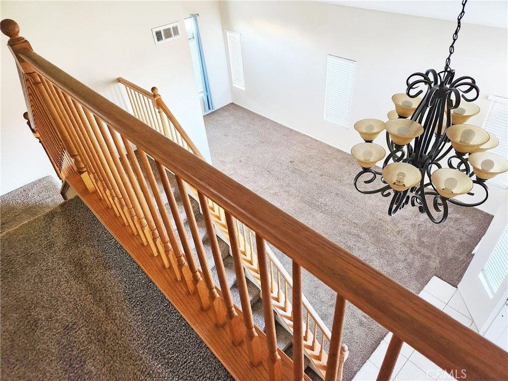 Located in the heart of the desirable Orangecrest Community, this 4-bedroom, 2.5-bath home welcomes you with vaulted ceilings and abundant natural light in the living and dining areas. The kitchen features white cabinetry, tiled counters, a garden window, and an eat-in area, flowing seamlessly into the family room with a brick fireplace and backyard access. A guest bath, laundry room, and direct garage entry complete the main floor. Upstairs, the primary suite offers a spa-like bath with a tiled shower, soaking tub, dual vanity, and walk-in closet, along with three additional bedrooms and a secondary bath. Additional highlights include ceiling fans, blinds, a three-car garage, and custom front yard hardscaping. The backyard is ready for entertaining with a concrete patio and lawn.