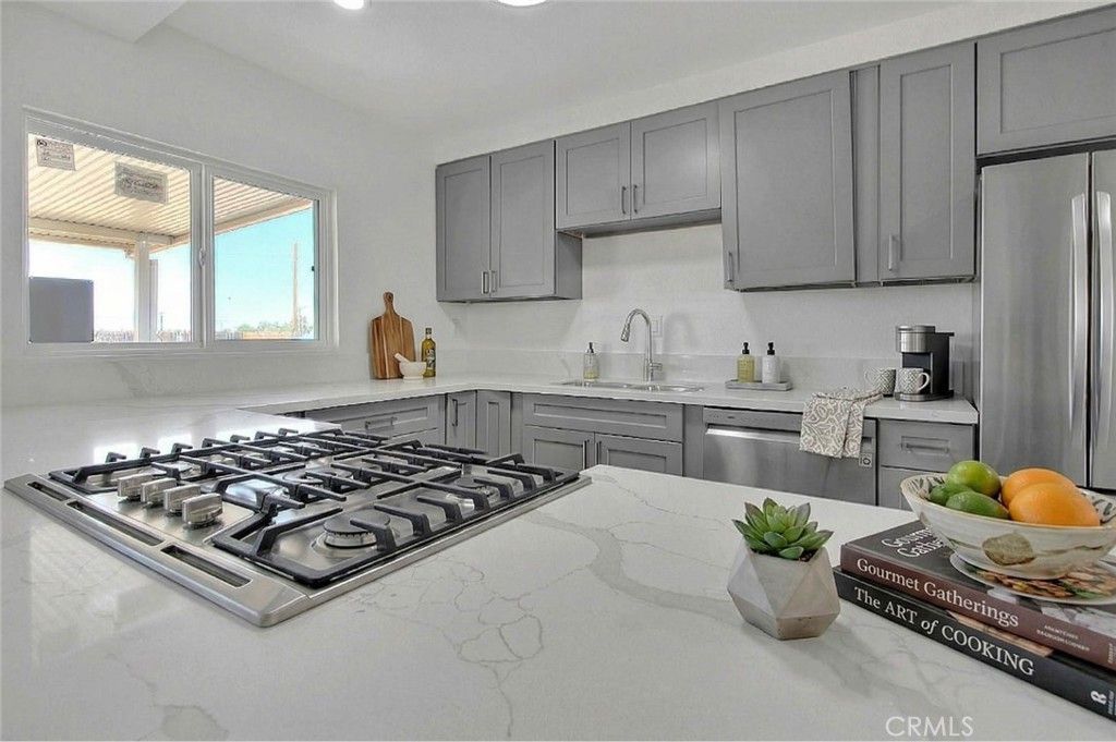 Welcome to this stunning 3-bedroom, 2-bathroom corner-lot home in Apple Valley, situated on over an acre of land. This beautifully updated home features an open floor plan, a cozy rock fireplace, and new luxury vinyl plank flooring throughout. Enjoy the fresh interior paint, modern light fixtures throughout, and a fully remodeled kitchen with brand-new cabinets, quartz countertops, stylish fixtures, and new appliances. Both bathrooms have been tastefully updated, and the home also includes energy-efficient windows, a new AC unit, and a circular driveway. Take in the breathtaking mountain views from this move-in-ready gem.
