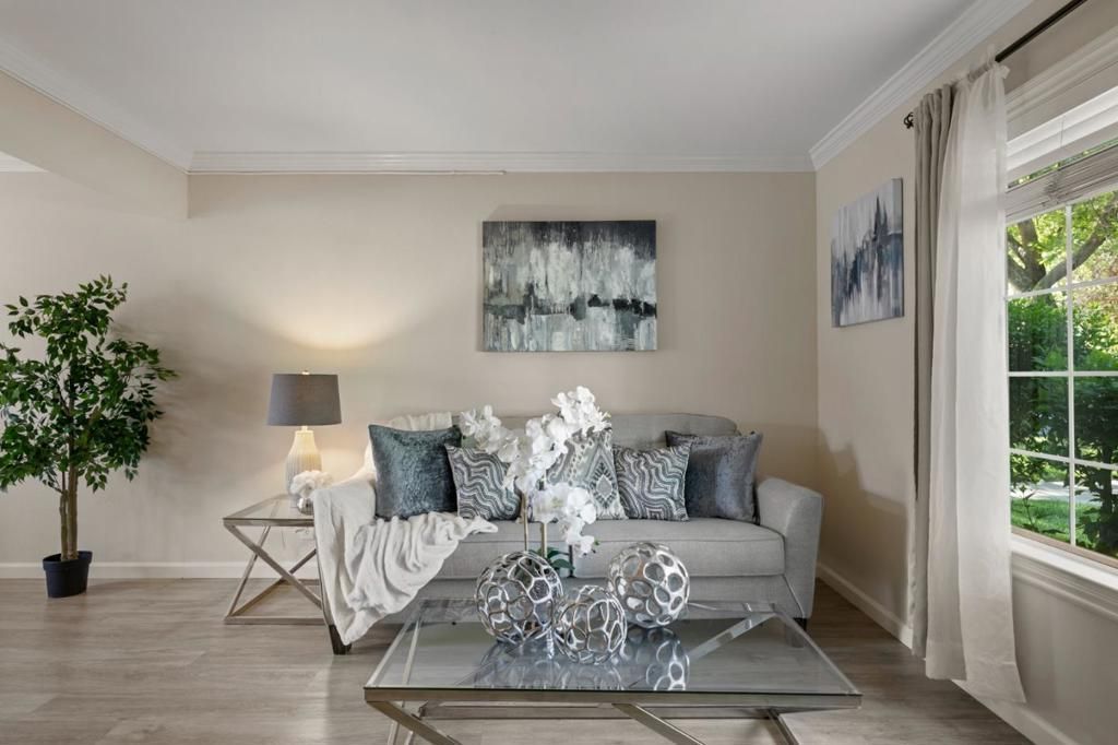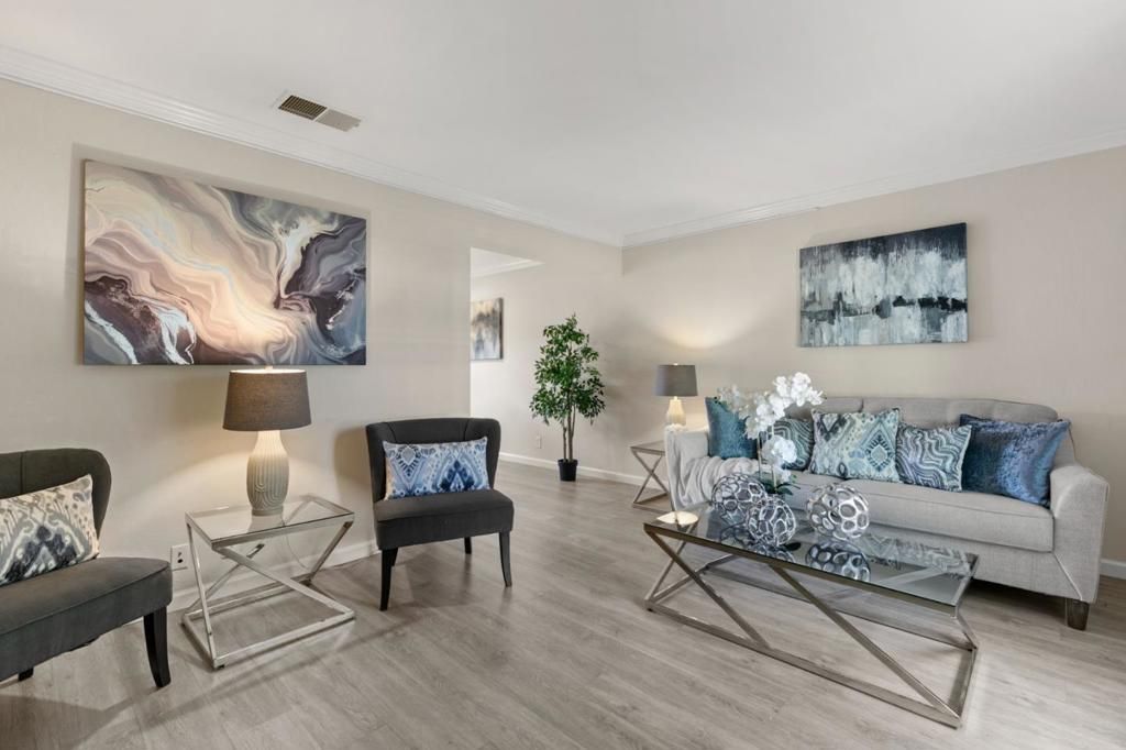 Welcome home to this end-unit townhome in Blossom Valley, where Coy Park sits right across the street offering open green space, a playground, and walking pathways just steps from your front door. Picture morning strolls and quiet evenings in a peaceful, established neighborhood that instantly feels like home. This rare find offers the privacy of a detached home, with neither bedroom sharing a neighbor's wall and a guest bath downstairs! Zoned to top-rated Hayes Elementary (8/10) and just blocks from Oak Grove High School, the location checks every box. The flexible layout offers two large bedrooms and a full bath upstairs, while the spacious living room and open kitchen flow seamlessly to a private patio below, ideal for everyday living and summer hangouts. A convenient guest bath on the ground level welcomes visitors with ease. Two dedicated carport spaces with bonus storage sit conveniently off the patio. Inside, enjoy fresh new paint throughout, an updated kitchen, updated main bath, new carpets, and new lighting, all move-in ready with indoor washer and dryer included. The HOA covers the big-ticket exterior items including roof, siding, gutters, perimeter fence, and exterior painting, so you can simply move in and enjoy. This is Blossom Valley living at its best!
