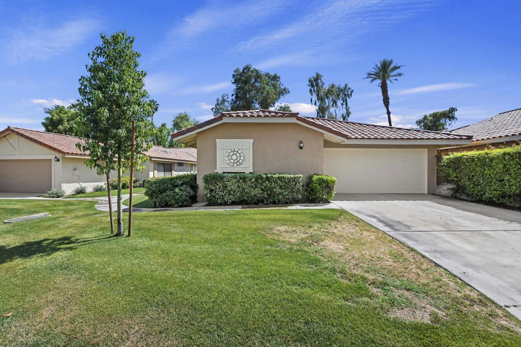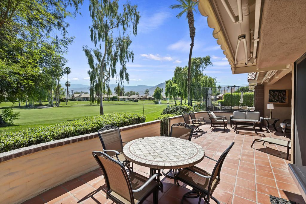 Welcome to this beautifully situated south-facing residence offering sweeping views of the fairway, tranquil lake, and surrounding mountains. Ideally positioned within Monterey Country Club, this highly desirable Max Plan 3000 floor plan features approximately 2,200 sq. ft. of thoughtfully designed living space.This spacious home includes 2 generously sized bedrooms, 3 full bathrooms, and an additional powder room. A versatile den/media room--complete with a wet bar and wine refrigerator--creates the perfect setting for entertaining or relaxing.The open-concept kitchen, living, and dining areas are filled with natural light, enhanced by the home's premium southern exposure. Step outside to the rear paver-tiled patio, where two retractable awnings provide shade and comfort while you enjoy picturesque golf course and mountain views--ideal for morning coffee or evening gatherings.Additional features include plantation shutters, ceiling fans throughout, mirrored closet doors, and elegant mirrored accent walls in the living and dining areas. The attached 2-car garage offers finished flooring for added functionality and style.Residents of Monterey Country Club enjoy an exceptional array of amenities, including 27 holes of championship golf, 20 pickleball courts, tennis facilities, a fitness center, and a vibrant clubhouse.Centrally located in the Coachella Valley, this home is just minutes from the renowned El Paseo, known for its upscale shopping, fine dining, and art galleries. Nearby College of the Desert and other local conveniences further enhance the appeal of this prime location.