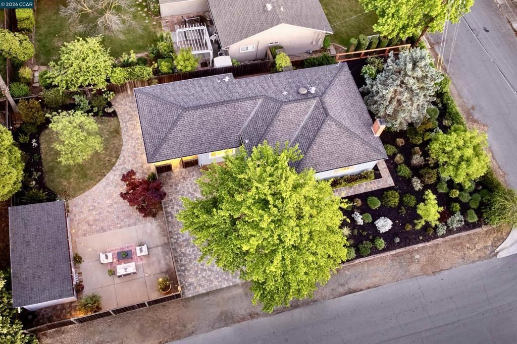 Charming cottage surrounded by a lovely landscaped lot, blends 1940s character with modern comfort and livability. This 2-bedroom, 1-bath home features a welcoming living room, gas-burning fireplace and large picture window. Energy-efficient recessed lighting complements a bright, well-designed eat-in kitchen with SS appliances, including a new 5 burner gas range and refrigerator. The updated garage conversion adds flexible living space and opens to a covered patio, level lawn with plenty of room to garden, play and entertain! Separate semi-finished out-building offers storage, fits a small car and offers desirable space to create a finished office, studio, or workshop. Situated in a coveted neighborhood, offering a peaceful suburban atmosphere, commuters will love the half mile to BART, while walkers will enjoy strolling to Todos Santos Plaza and vibrant restaurants, cafés, and retail of downtown Concord. With its expansive flat lot, endless possibilities for outdoor living including room for a pool or expansion, this cottage is a rare find combining charm, space, and convenience!