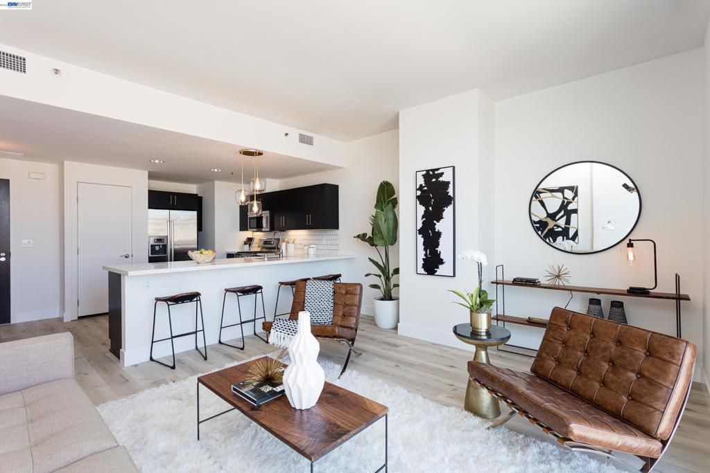 Beautifully remodeled one-bedroom, one-bath, boasts a dynamic cityscape view and a perfect entertainment kitchen. Rich black cabinets and stunning quartz counters take center stage to the open living design. Floor to ceiling windows showcase the city lights. Designer lighting and hardware add a nice polish to a classic style. The beautiful light floors have a farmhouse rustic grain. They provide a lovely contrast to the smooth walls and dark cabinets. The bedroom offers double closets, dynamics views, and a terrific balcony. The bathroom is spacious and nicely appointed with a large soaking tub and a separate stall shower. Parking and storage are also included. The Ellington is minutes from BART, the Alameda/Oakland Ferry, and Amtrak. Walk to a plethora of fine restaurants, bars, breweries, theater, music, and art galleries. This modern full-service high-rise has 24/7 concierge, beautiful pool deck with heated pool, spa, showers, and BBQ. It also has an impressive fitness center, and a terrific community lounge, with full kitchen, tables, soft seating, and DirecTV???. This is luxury urban living at its finest.