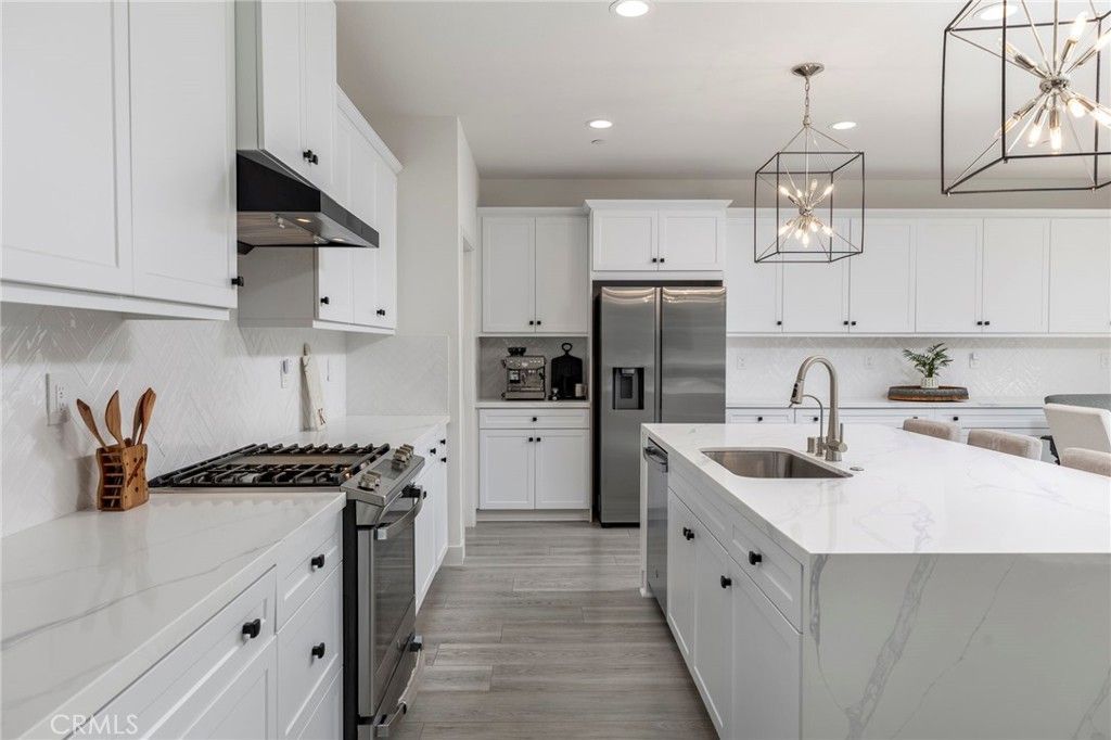 Welcome to 2227 Melogold Way, a beautifully upgraded and meticulously maintained home located in the highly desirable community of Bedford in Corona. From the moment you arrive, the pride of ownership is evident with professionally designed landscaping in both the front and backyard, creating incredible curb appeal and a clean, modern exterior that sets this home apart. Step inside and youre immediately welcomed by an open, light filled floor plan designed for both comfort and entertaining. The heart of the home is the stunning kitchen, featuring a quartz expanded island that provides generous space for cooking, gathering, and entertaining. Elegant pendant lighting adds a modern touch while highlighting the beautiful finishes throughout the space. The home also includes a reverse osmosis water filtration system offering convenience and high quality drinking water right at your fingertips. The open concept design flows seamlessly into the dining and living areas, creating a spacious environment ideal for everyday living and hosting family and friends. Large windows and sliding glass doors bring in natural light and offer views of the perfectly manufactured backyard landscaping, designed to be both beautiful and low maintenance. As you move upstairs, youll notice the custom stair railing that adds both style and sophistication to the homes interior design. The primary suite is a true retreat, offering a spacious layout along with thoughtful upgrades that enhance both comfort and functionality. The primary bathroom has been expanded to create a luxurious and open feel, featuring modern finishes and plenty of space to unwind. One of the standout features of the primary suite is the impressive custom closet area. A bedroom has been converted into an expansive walk in closet, providing exceptional storage and organization space that feels like a boutique style dressing room. Every detail of this home has been thoughtfully upgraded to blend modern design with everyday functionality. From the designer lighting and quartz surfaces to the custom interior features and beautifully landscaped outdoor spaces, this property truly offers the best of style, comfort, and convenience. Located in a desirable South Corona and within the boundaries of the prestigious Santiago High School, close to parks, shopping, and easy commuter access.