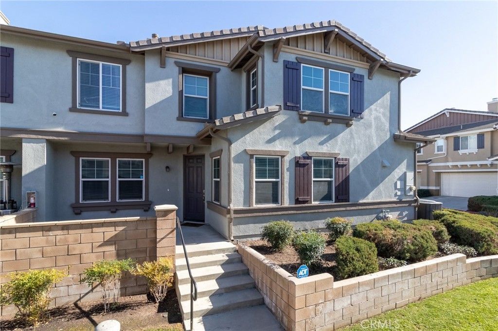 MUST SEE this stunning, newly upgraded, move-in-ready townhome nestled in the coveted Hidden Gate community of Grand Terrace. This beautifully designed home welcomes you to a lovely living room featuring sleek built-ins and a fireplace. With soaring ceilings and luxurious LVP flooring throughout, the home exudes warmth and sophistication. The light and bright kitchen features fabulous granite countertops and a spacious island, creating an inviting space for meal preparation and entertaining in the adjacent dining area. On the main floor, you'll find a convenient half bath, while upstairs awaits a spacious and serene primary suite complete with a generous walk-in closet and a spa-like bathroom, showcasing a double vanity, a large soaking tub, and a separate shower. Two additional inviting bedrooms share a stylish bathroom, also featuring a double vanity, alongside a laundry room with a sink and a versatile bonus space ideal for a home office. Step outside to a peaceful patio, ideal for relaxation and enjoying your morning coffee. The two-car garage offers ample parking and storage, with direct access to the home. Enjoy community amenities, including a sports court, pet stations, and beautifully landscaped seating areas. The exterior was freshly painted last year, enhancing its vibrant appeal. With convenient access to the 215, 91, 60, 10 and 210 freeways, you're just an hour away from beach days, mountain adventures, or a trip to Palm Springs. Plus, Loma Linda University Medical Center, VA Loma Linda Healthcare System, Arrowhead Regional Medical Center, and Redlands Community Hospital, CSUSB, and UCR are all just moments away. Dont miss this exceptional opportunity to become part of a charming community and make this beautiful townhome your own!