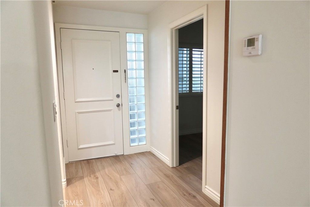 Experience the true Irvine lifestyle at the prestigious, guard-gated Metropolitan, where this immaculate first-floor condominium offers a sophisticated blend of comfort and style. Bathed in natural light and enhanced by elegant crown molding, wood flooring, and recessed lighting, the open-concept living space feels grand and expansive, anchored by a large floor-to-ceiling mirror and a light, bright kitchen featuring sleek stainless steel appliances, travertine backsplash, a convenient breakfast bar, and plenty of cabinet storage space. The primary suite serves as a true sanctuary, boasting a spacious walk-in closet with shelving and direct access to a private covered patio overlooking the lush grounds. A versatile bonus room with a large wardrobe offers the perfect footprint for a second bedroom or home office, while the spa-like bathroom is complete with a dual-sink vanity, deep soaking tub, and separate walk-in shower. Including one assigned parking space in the underground garage and resort-style amenities, such as a tropical pool, spa, clubhouse, and onsite fitness center, this home offers a tranquil retreat just minutes from JWA, fine dining, and major freeways.