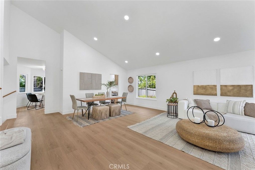 Remodeled 4-bedroom, 3-bath home in Lake Forest featuring an open-concept layout, vaulted ceilings, and abundant natural light. Updated kitchen with quartz counters and custom cabinetry opens to spacious living areas with a fireplace and built-in dry bar. Stylishly upgraded bathrooms, including a dual vanity primary suite. Private backyard and close to parks, schools, and shopping.