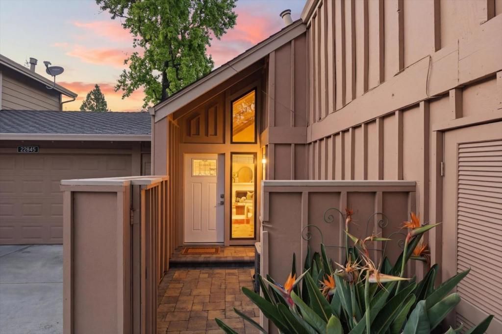 Modern Elegance Awaits in this Stunningly Renovated 3-Bedroom, 2.5-bath Home in Cupertinos most sought after, gated community - De Anza Oaks. Academic excellence: Stevens Creek Elem, Kennedy Middle & Monta Vista High! Enter into the formal entry & experience the light filled & airy ambiance w/ vaulted ceilings & large windows. Beautiful, cherrywood floors canvas the main living areas. The kitchen is any chef's dream welcoming you w/ white shaker cabinetry, quartz counters, SS appliances, tons of storage complete w/ a walk-in pantry. The Luxurious Primary Suite is exceptionally spacious in size w/ a romantic vibe. Boasting a walk in closet & a ZEN en-suite bathroom complete w/ double sink vanity, built-in storage, large shower w/ rain showerhead & body massage jets. Two additional bedrooms share a walk-out balcony w/ views of the mountains. A quiet & serene cul-de-sac location. Numerous highlights: Double Pane Windows, central AC, interior laundry room, EV Charger in garage. Relax & unwind in your private backyard w/ paver patio. LOW HOA w/ resort amenities: Huge Park, Playground, 2 Pools, Big Clubhouse, Trails... all secured behind gates. Enjoy the beauty of the foothills w/ Silicon Valley at your fingertips! Close to Whole Foods, Memorial Park, De Anza College! Welcome Home!