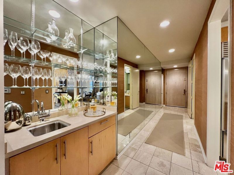 **Available furnished or unfurnished** Welcome to a luxurious haven at the Hamptons in Beverly Hills, where sophistication meets comfort in every detail. Behind stately Double Doors, an open and bright space with high ceilings, and a welcoming fireplace. This living area features a chic wet bar, a dining area that opens to a covered balcony with two sliding doors, expanding the gathering space for alfresco entertaining. Step into the primary suite, a spacious resort-like retreat that boasts a romantic fireplace, a large built-in wall unit, a huge walk-in closet with a dressing area, and a lavish en-suite bathroom with a spa tub, a separate oversized shower, dual vanity, and separate water closet with bidet. The updated eat-in kitchen is a chef's dream, equipped with a Viking Stove, Sub-Zero fridge, and custom counters and cabinetry, offering both style and functionality. Floorplan is typical of the 2-BR condominiums at this complex but photos may not be of actual unit. Property is Walkable to places of worship. Beverly Hills schools. Steps from La Cienega Park. Pet friendly. Amenities include a pool, spa, gym, sauna, and a newly updated formal lobby to receive guests. Controlled access building. Remote access underground parking with 2 side-by-side spaces + guest spot.