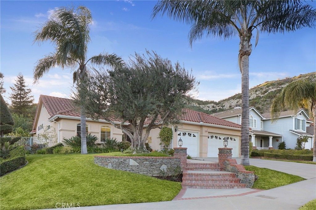 Welcome to this exquisitely remodeled home in West Hills, Stonegate community. This single-story home is perfectly sited on a corner lot in peaceful cul de sac. Step through the elegant double doors into a spacious living room featuring vaulted ceilings, expansive windows and doors that flood the space with natural light.The chefs kitchen is the heart of the home, complete with a large center island, granite countertops, and newer stainless steel appliances. It seamlessly flows into the inviting dining room, where a cozy fireplace sets the perfect ambiance. The large great room over looks the patio and pool. The true primary suite is a peaceful retreat with lofted ceilings, a generous walk-in closet, and a spa-like en-suite bathroom featuring dual vanities, a soaking tub, and a separate shower?all overlooking the beautifully landscaped gardens. Thoughtfully upgraded and meticulously maintained, the home also offers three additional bedrooms and two full bathrooms, ideal for family or guests. Step outside to your own private oasis: lushly landscaped grounds, expansive covered patios with skylights and a ceiling fan, a built-in BBQ, and a stunning pebble tech pool and spa with cascading waterfalls. Enjoy serene views of the surrounding hills and an abundance of fruit trees, creating the perfect setting for both relaxation and entertaining. Located within the prestigious school district for Pomelo, Hale, and El Camino schools, and just minutes from Warner Center, Westfield Topanga Mall, The Village, Calabasas Commons, top-tier shopping, parks, and scenic hiking trails?this home truly has it all!
