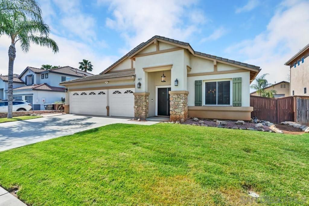 Beautifully upgraded single-story home with Low Mello-Roos & No HOA! This 4-bed, 2-bath residence with 3-car garage offers an open and inviting layout with high ceilings, a double door entry, and seamless flow between living spaces. The remodeled kitchen is the heart of the home, featuring quartz countertops, a spacious island with designer stone detail, newer appliances, farmhouse sink, custom cabinetry with pull-out drawers, full-height tile backsplash, under-cabinet lighting, and dual pantry spaces including a large custom-built storage area. The kitchen opens to the family room with a cozy fireplace, custom stone accents, recessed lighting, and abundant natural light enhanced by tinted windows and shutters. Throughout the home youll find thoughtful upgrades including hand-blown glass light fixtures, recessed lighting, and plantation shutters. The primary suite offers a relaxing retreat with a spa-inspired bathroom complete with a fully remodeled shower and tub, dual showerheads including a rain feature, custom tile work, new fixtures, and a spacious walk-in closet with built-in organization. Enjoy indoor-outdoor living with a large covered Alumawood patio & beautifully maintained yard with lining palm trees & low maintenance turf. Located on a quiet cul-da-sac this home is a must see!