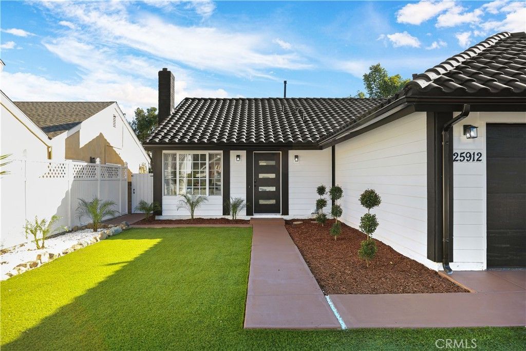 reduced $25000.Back on the market as of 3/20/2026. welcome to this beautiful & completely remodeled 3-bedroom, 2-bath single-family home on a quiet cul-de-sac in the highly desired Castle Hill Community of Laguna Hills. Walk to parks, shopping, and schools. This light, open-plan home features a recently installed, fully paid-for solar system, Upgraded HVAC system with AC condenser & furnace, and all new appliances. New Doors throughout, New fixtures & recessed LED lighting. All switches and outlets are new. Custom tile flooring is also new throughout. Fresh interior and exterior paint. All new cabinets in the kitchen and bathroom with quartz countertops. New refrigerator and gas range. Whole house re-plumbed with PEX re-pipe. New electric chimney/Fireplace Upgrade with 5 x 10 ft black tile. Garage upgraded with drywall ceiling and epoxy floor with a new garage Door and opener. All new exterior lights, new rain gutters, new pavers in the back patio, New landscape with new plants & synthetic grass yards both front and back. Sidewalk and driveway upgraded with new desert coffee stain. This house is turn-key. You will think you're in a model home. In a wonderful and quiet Family neighborhood.