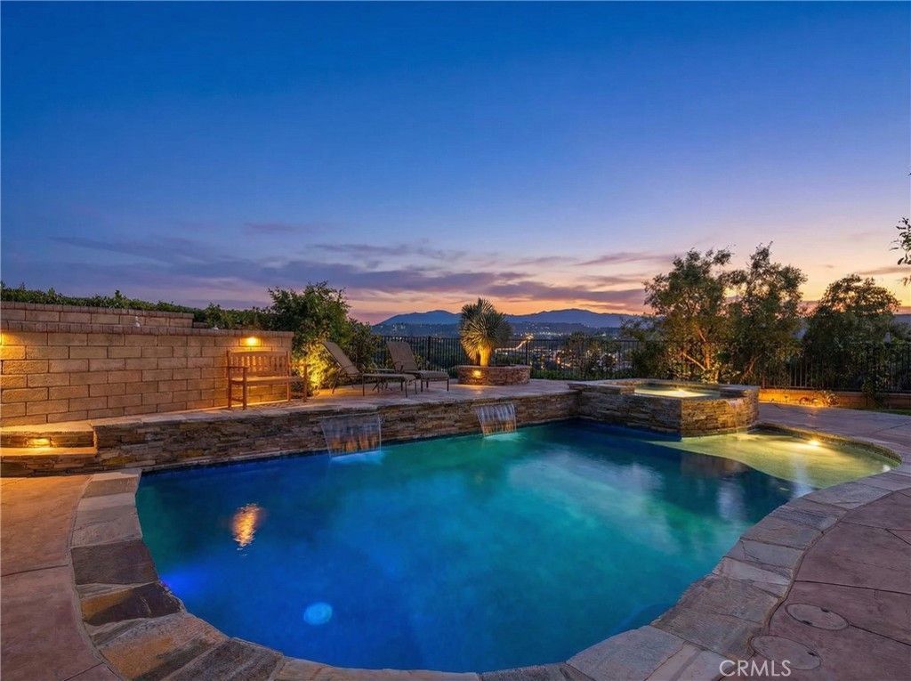 STUNNING MODERN FARMHOUSE POOL HOME IN THE GATED RIVER VILLAGE COMMUNITY WITH PANORAMIC VIEWS! Perfectly positioned on a premium view lot, this exceptional 5 Bedroom, 5 Bath home captures breathtaking mountain vistas by day and sparkling city lights by night. Step into your private entertainers dream yard featuring a pebble tec pool and spa, fire pit, and a custom outdoor BBQ kitchen designed for unforgettable gatherings. Inside, the open-concept floor plan is enhanced by wood flooring, custom built-ins with accent lighting, crown molding, beautiful chandelier & pendents, office niche, cozy fireplace. The expansive kitchen is a showstopper with granite countertops, stainless steel appliances, custom backsplash, pendant lighting, and a large island with ample seating plus a beautiful butlers pantry with beverage refrigerator, walk-in pantry, and abundant cabinetry. The downstairs primary suite offers comfort and privacy with a very spacious walk-in closet and oversized bath. Think Next Gen type additional bed and bath down which is a perfect fit for guests/in laws or a home office set up. Upstairs features a large bonus room/loft ideal for entertaining, along with three generously sized bedrooms and two additional baths. Enjoy energy efficiency with paid-for solar, all within a sought-after gated community. This home truly has it all luxury, views, and the ultimate indoor-outdoor lifestyle. 3 Car Garage with epoxy floors and tons of extra storage space. The amenities include a super nice Club House, Pool, Spa, Playground and Dog Park. Conveniently located near shopping, dining, and easy freeway access. Unparelled Views!!!!!!!!!! No rear neighbors!!!!!!!! This is truly a rare find!!!!!!!!!! This home checks every box!!!!!!!!!!!