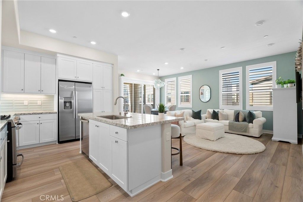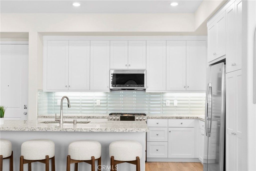 Rarely available and move-in ready, this former model corner residence in Valencias sought-after Five Point community offers EV Charging and Solar. Ideally positioned in a private end location, this light-filled home features an open-concept layout that seamlessly connects the main living area to a set-back balcony giving you a more private and quieter feeling. Thoughtfully upgraded with designer finishes, the interior showcases custom paint with accent detailing, stylish lighting, plantation shutters with split-tilt functionality, plush new carpeting with premium padding, LVP flooring, and sleek cabinetry with soft-close features. The spacious layout lives larger than many three-bedroom homes, offering oversized closets and abundant storage. As a former model, the home includes smart-home technology, a private tandem garage with EV charger, custom garage shelving, whole-home water filtration system, and additional nearby private storage. Located within Valencia by Five Points eco-conscious community designed for net-zero greenhouse gas emissions, residents enjoy EV-friendly infrastructure, community gardens, and expansive green spaces, weekly farmers markets, resort-style pools with cabanas, gas barbecues, childrens play areas, multiple parks, scenic walking and golf cart trails, and breathtaking mountain views throughout the community?all with more favorable HOA dues than many newer communities. Just minutes from the 5 Freeway, Highway 126, Six Flags Magic Mountain, and all that Valencia has to offer. This home is a must see!!!