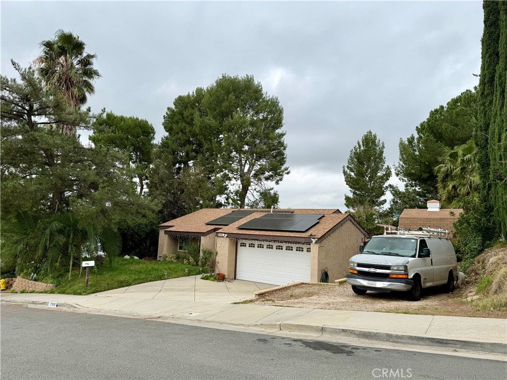NO HOA or Mello-Roos! Tucked away on a quiet cul-de-sac with beautiful street views, this well-maintained single-story 3 bedroom, 2 bath home offers RV parking and an owned solar system that keeps electricity bills extremely low. A brand-new HVAC system provides year-round comfort and efficiency. Spacious living room with stone wood-burning fireplace flows into an open kitchen with abundant cabinetry, beautiful countertops, stainless steel appliances, island, and breakfast bar. Laminate flooring throughout. The private primary suite features doors leading to the covered patio and backyard, where you can relax and enjoy the beautiful views. The backyard also includes a convenient storage shed for additional space. A centrally located indoor laundry area near the secondary bedrooms offers ample storage. Additional highlights include a garage and wide driveway. Located near desirable schools and shopping centers, this move-in-ready home combines comfort, efficiency, and location.