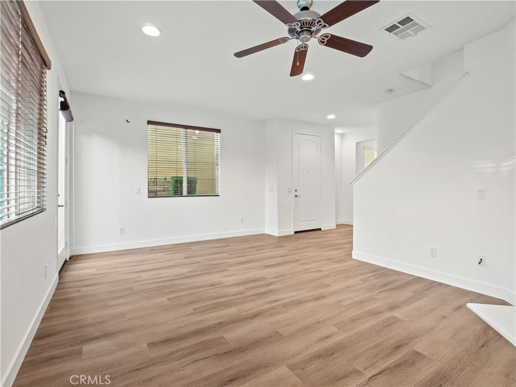 Welcome to this charming 2-bedroom, 2.5-bathroom townhome in the highly desirable Plum Canyon @ Mariposa community. Upon entering, youre greeted by an open living space that flows seamlessly into the kitchen, dining area, and half bathroom. The home features new luxury vinyl flooring, fresh interior paint, and recessed lighting downstairs, creating a bright and modern atmosphere. Step outside to your private backyard with beautiful trees, perfect for relaxing or entertaining. Upstairs, both bedrooms offer en-suite bathrooms, providing comfort and privacy. Additional highlights include a newer water heater, a laundry room, an attached 1-car garage with a 220-volt outlet, an assigned covered carport space, and included appliances for your convenience. Enjoy resort-style amenities including a pool, spa, BBQ area, playground, and clubhouse. With No Mello-Roos and a prime location near top-rated schools and Skyline Ranch Plaza?featuring Starbucks, restaurants, a market, and more?this home truly has it all!
