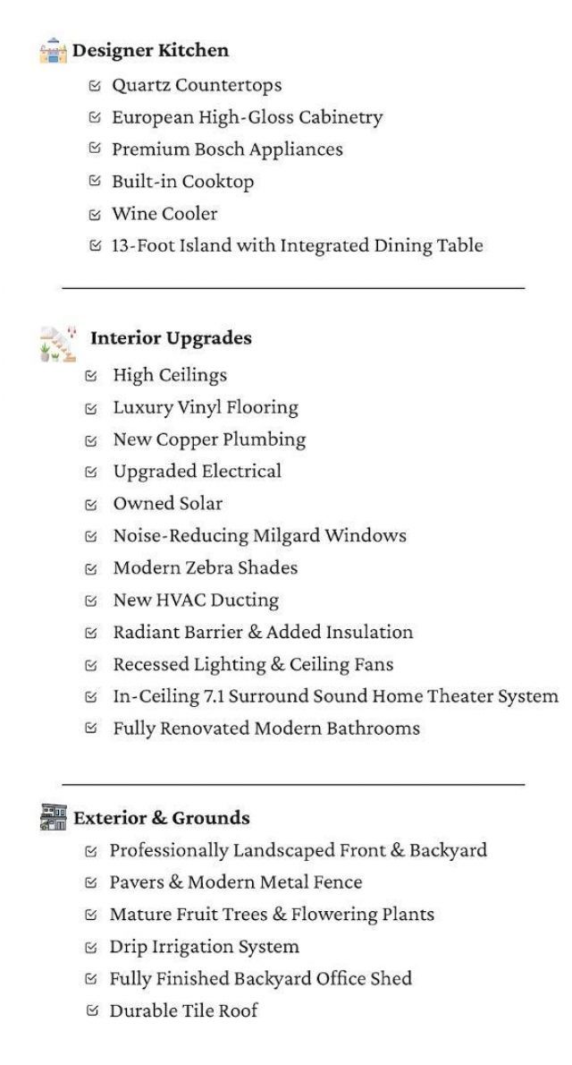 Exquisite North-East facing, fully remodeled 2,026 sq ft home in the highly sought-after Berryessa neighborhood. This home features a stunning contemporary kitchen with quartz countertops, high-gloss cabinetry, Bosch appliances, winecooler, and a 13ft island with integrated dining perfect for entertaining. Over $500K in upgrades, permitted extension, and modern enhancements throughout. Highlights include luxury vinyl flooring, new copper plumbing, upgraded electrical, solar, radiant barrier roof insulation, noise-reducing Milgard windows, new HVAC ducts, recessed lighting, and a 7.1 in-ceiling home theater. Fully renovated bathrooms, professionally landscaped grounds with pavers and metal fencing, mature fruit trees, drip irrigation, a finished backyard office shed, and a durable tile roof complete this exceptional offering. Located in the Ruskin Elementary/Sierramont Middle/Piedmont Hills High school district (buyer to verify). Minutes to BART, Light Rail, I-680 & 237, Steps from the 39acre PenitenciaCreek & Cataldi parks, with trails, playgrounds, tennis, Close to Safeway, Costco, Sprouts, Ranch 99, and more. This is a rare opportunity to experience elevated, modern living in one of Berryessa most desirable pockets!!