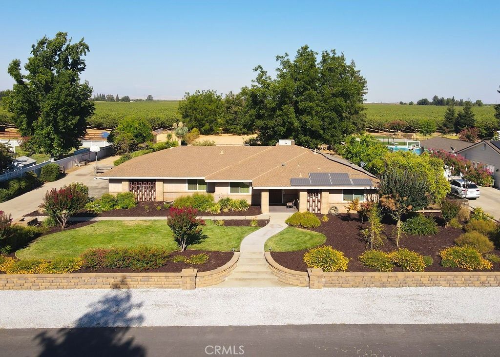 Set on a beautifully landscaped 1.1-acre lot in North Merceds prestigious Whitegate neighborhood, this elegant estate offers privacy, serenity, and timeless charm. Mature fruit trees and vibrant gardens surround the home, which boasts formal living and dining areas, a bright sunroom, and a well-appointed kitchen with ample storage and peaceful backyard views. The spacious primary suite features a sitting area, walk-in closet, and sliding doors opening directly to the lush grounds. Outside, relax beside the tranquil koi pond and waterfall, or make use of the detached two-room structure which is ideal for a workshop, studio, or storage. Recent upgrades include a new residential well, owned solar, and water purification system. The home also offers dual-pane windows throughout. Additional highlights include RV/boat parking potential, a utility room with workbench, and ample storage throughout. All this, just minutes from UC Merced, the new hospital, and North Merced amenities.
