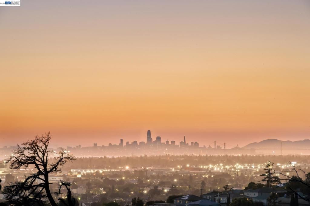 Surrounded by beautiful East Bay regional parks, this completely remodeled Mid-Century 3BD/2BA home offers stunning San Francisco Bay views in Oaklands hillside neighborhood of Chabot Park. The stylish 1672 SQFT home enjoys picture windows that stream sunshine into the living and dining rooms and frame Bay views as the backdrop to your life - from downtown SF to far down the peninsula. Relax in front of the fireplace or entertain in the dining room. Recessed lighting and hardwood floors span into the upgraded eat-in kitchen with a large island, a wall of extra countertop space, and stylish cabinets. Cooking is easy as friends and family gather around the bar seating or in the breakfast nook. Downstairs find interior access to the two-car garage and laundry area. The three bedrooms are tucked away in the sleeping wing for privacy. The primary suite features backyard views, a spacious closet, and a gorgeous bath with dual vanity and towel warmer. Two bedrooms have roomy, custom closets and share a chic, modern hall bath. The giant backyard and patio offers plenty of room to unwind, garden, dine al fresco, and play. Out your front door, Oakland Zoo and miles and miles of trails are only blocks away, or golf, fish, or take the dog out at Chabot Park. Bonus: Sewer lateral compliant!