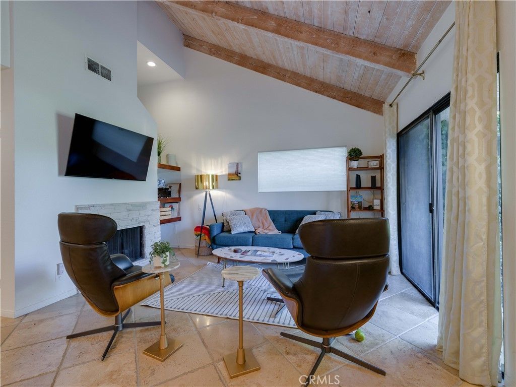 Mid-Century Charm Meets Modern Style in Mission Hills Country Club! Located in the desirable Retro Mirage enclave of Rancho Mirage, this beautifully updated 2BD/2BA, 1,547 sq ft end-unit condo blends iconic mid-century architecture with todays comforts. Vaulted ceilings, clean lines, and panoramic mountain views set the tone for this stylish desert retreat. Inside, enjoy two spacious en-suite bedrooms?one upstairs, one down?offering flexibility for guests or a home office. The light-filled living room features soaring ceilings, a cozy stone fireplace, and stone flooring throughout. A custom quartz bar with vibrant blue hues adds a perfect touch for entertaining. The updated kitchen boasts quartz countertops, stainless steel appliances, pantry, and a dedicated coffee station. Double sliders lead to the private rear patio?ideal for morning coffee or evening BBQs. Additional outdoor spaces include a gated courtyard and a rooftop terrace with stunning sunset and mountain views. Detached 2-car garage with newer door, mature landscaping, and access to 3 community pools/spas. Enjoy all Mission Hills Country Club has to offer?award-winning tennis, golf, fitness, clubhouse, and 24-hour guard-gated security. Perfect as a full-time home or weekend getaway!