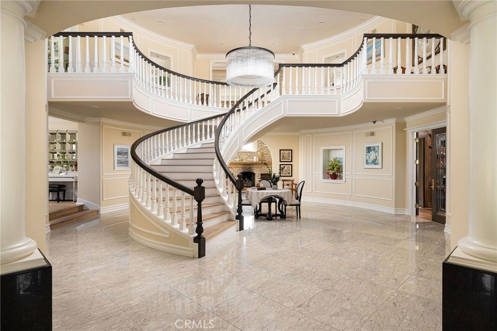 Welcome to 31632 Trigo Trail, an extraordinary 9,500sqft, 7 Bedrooms/7Bathrooms estate nestled on 2.2 acres of pristine land within the exclusive Los Ranchos Estates enclave, part of the highly sought-after, guard-gated community of Coto de Caza. Offering the pinnacle of privacy and elegance, this magnificent property is secured behind its own private gate. As you approach, a beautifully manicured front yard and graceful circular driveway guide you to a stately porte-cochère, setting the tone for the opulence that awaits within. Step through the grand entrance into an impressive foyer featuring a sweeping staircase bathed in natural light, creating a breathtaking first impression. The expansive formal sitting room is designed for sophisticated entertaining, showcasing rich wood floors, a striking floor-to-ceiling fireplace, exquisite designer chandeliers, and a stunning entertainment bar. The gourmet chefs kitchen offers a generous center island with bar seating, premium stainless steel appliances, and panoramic views of the lush grounds and sparkling pool make this kitchen a masterpiece of style and functionality. Adjacent to the kitchen, a charming breakfast nook accented by a cozy fireplace offers a relaxed dining experience, while a connecting room enhances the homes open and airy ambiance. Conveniently located on the main level, the luxurious primary suite exudes tranquility and grandeur. Wood floors, a warming fireplace, and picturesque views of the estates lush landscape create a true retreat. The spa-like primary bathroom features dual vanities, a dedicated makeup area, a spacious walk-in shower, and a soaking tub. Also on the first level you will find an elegant office detailed with woodwork, coffered ceilings, custom built-ins, wood flooring, and its own fireplace. Upstairs, all secondary bedrooms are generously sized, each boasting private balconies with breathtaking views of the surrounding hillsides and mountains. This level also offers a versatile bonus room and a refined library, perfect for relaxation or study. The estates outdoor oasis is equally impressive, featuring a private pool and spa, a welcoming outdoor room complete with a fireplace and heaters for year-round enjoyment, a sprawling grass area, a bocce ball court, and so much more?offering endless possibilities for recreation and entertaining. Furnishings are optional. 31632 Trigo Trail offers the finest luxury living Coto de Caza has to offer!