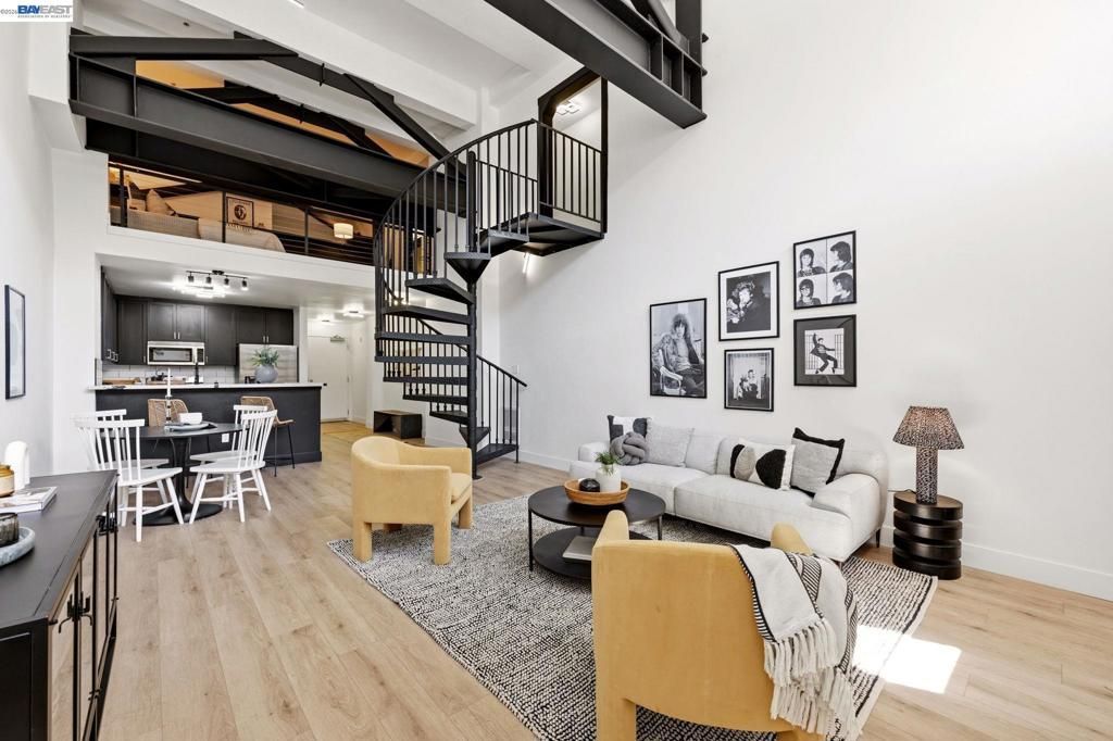 Modern industrial loft living meets elevated Oakland style at 330 13th Street, Unit 1A. This sophisticated 1 bedroom, 1.5 bath residence makes an immediate impression with soaring ceilings, dramatic steel beams, oversized windows, and a sculptural spiral staircase that brings striking architectural presence to the space. The open-concept floor plan offers a refined blend of scale and comfort, with a spacious living area, sleek modern kitchen, and a lofted bedroom retreat that feels both airy and intimate. Clean lines, warm finishes, and curated design details create a home that feels polished, stylish, and distinctly urban. A well-placed half bath on the main level adds convenience for guests and enhances everyday livability. Set near Downtown Oakland and just minutes from Lake Merritt, this location offers effortless access to some of the citys most vibrant dining, cafes, shopping, nightlife, BART, and major commuter routes. Old Oakland, Chinatown, and Uptown are all close by, giving you the best of Oaklands culture, energy, and convenience. Whether enjoying the nearby waterfront, exploring the neighborhoods acclaimed food scene, or coming home to a space with true architectural character, this residence offers a rare combination of design, scale, and location.