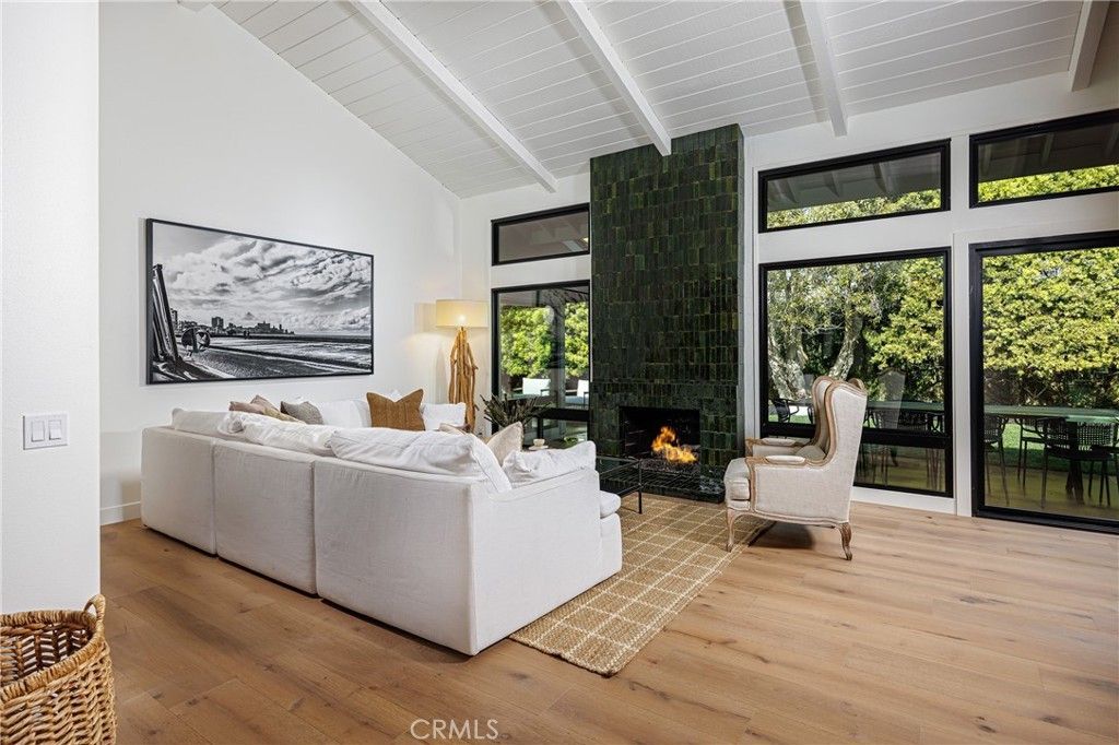 Stunning single-story Mid-Century Ranch estate located in the prestigious Harbor View Hills South community of Corona del Mar. This fully remodeled residence offers the perfect blend of warm modernism and timeless sophistication. Situated on a spacious cul-de-sac lot, the home welcomes you with soaring vaulted ceilings, abundant natural light, and Villa Blanca wood flooring throughout. The gourmet kitchen is a chefs dream, showcasing custom cabinetry, Pietra Gray marble countertops, Wolf and Sub-Zero appliances, and exquisite finishes designed for both function and elegance. The primary suite serves as a serene retreat, featuring a spa-inspired bathroom with a freestanding soaking tub, luxurious fixtures, and generous space to unwind. Four spacious bedrooms provide flexibility for relaxation, guests, or productivity, while the expansive three-car garage makes this an ideal home for any car enthusiast. Recent upgrades include new windows and sliders, a dual Dutch front door, a tankless water heater and re-pipe to Pex piping. The private backyard is beautifully landscaped, offering ample space for entertaining or enjoying tranquil outdoor living. Ideally located just minutes from Corona del Mars world-class beaches, award-winning schools, and premier shopping and dining.